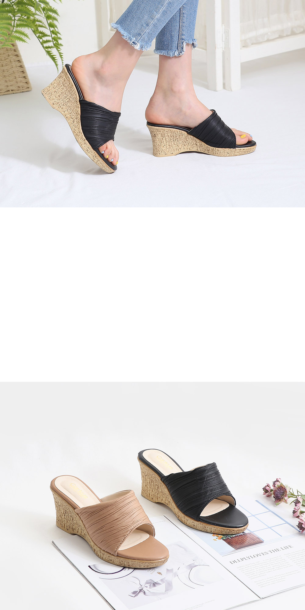 • 링클스트랩 키높이 웨지힐 슬리퍼