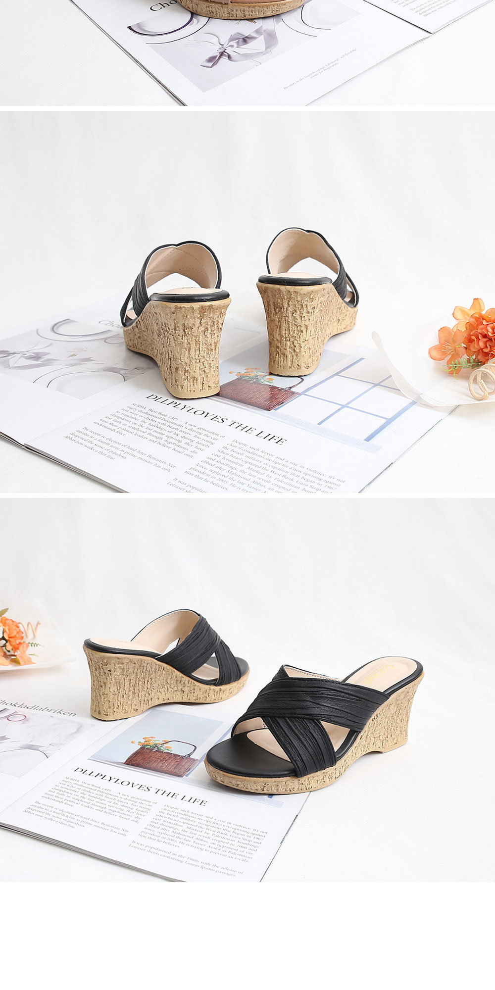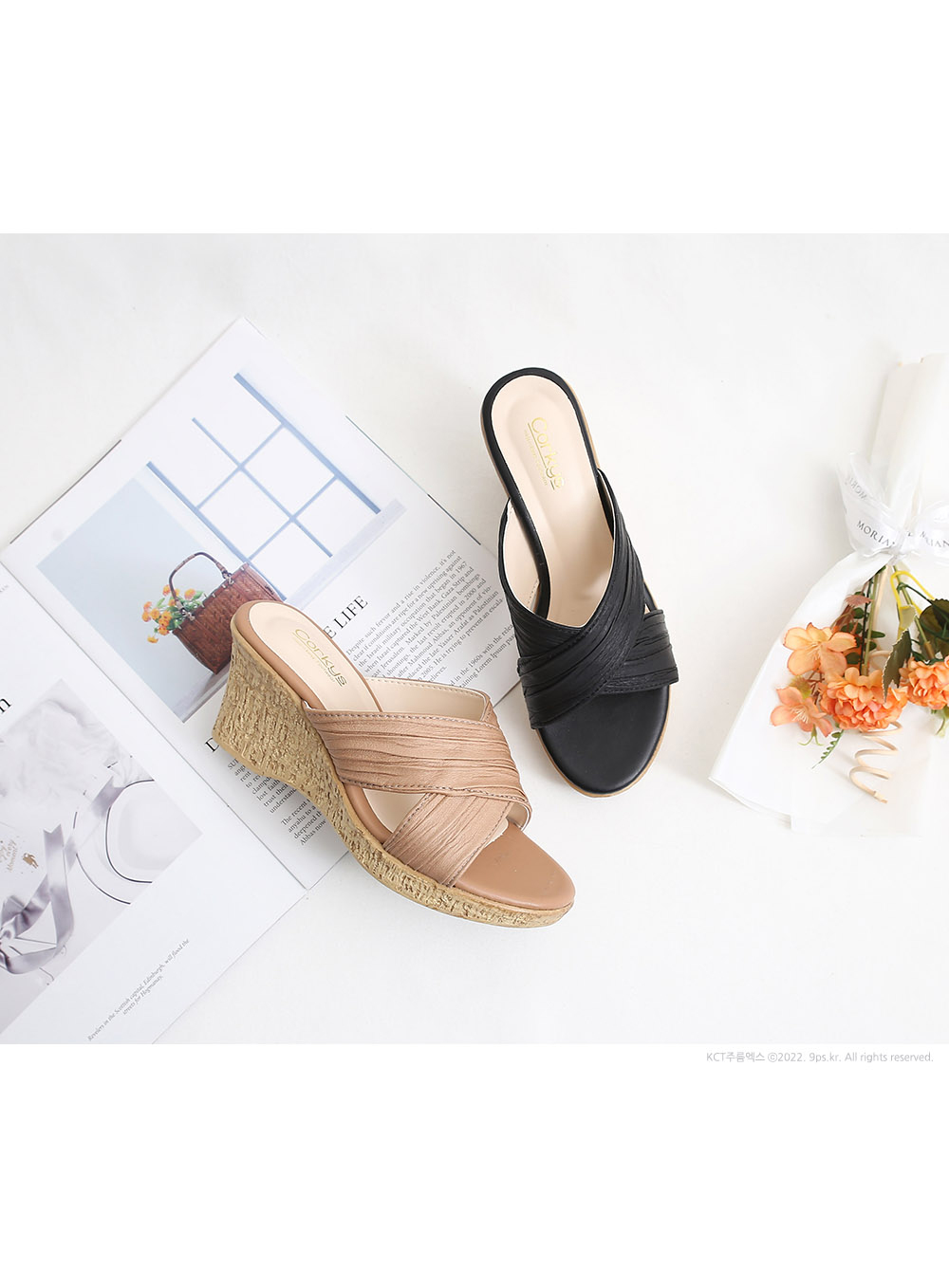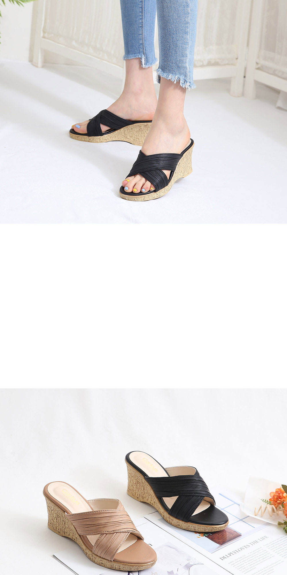 주름 크로스 웨지 통굽 키높이 슬리퍼 / 모리드 / 디비디비 / 구매하기 / 특가할인