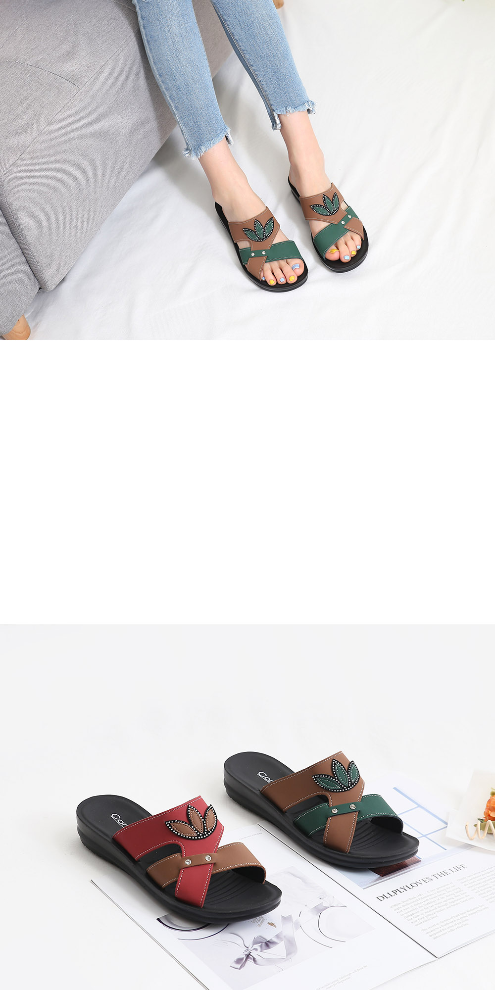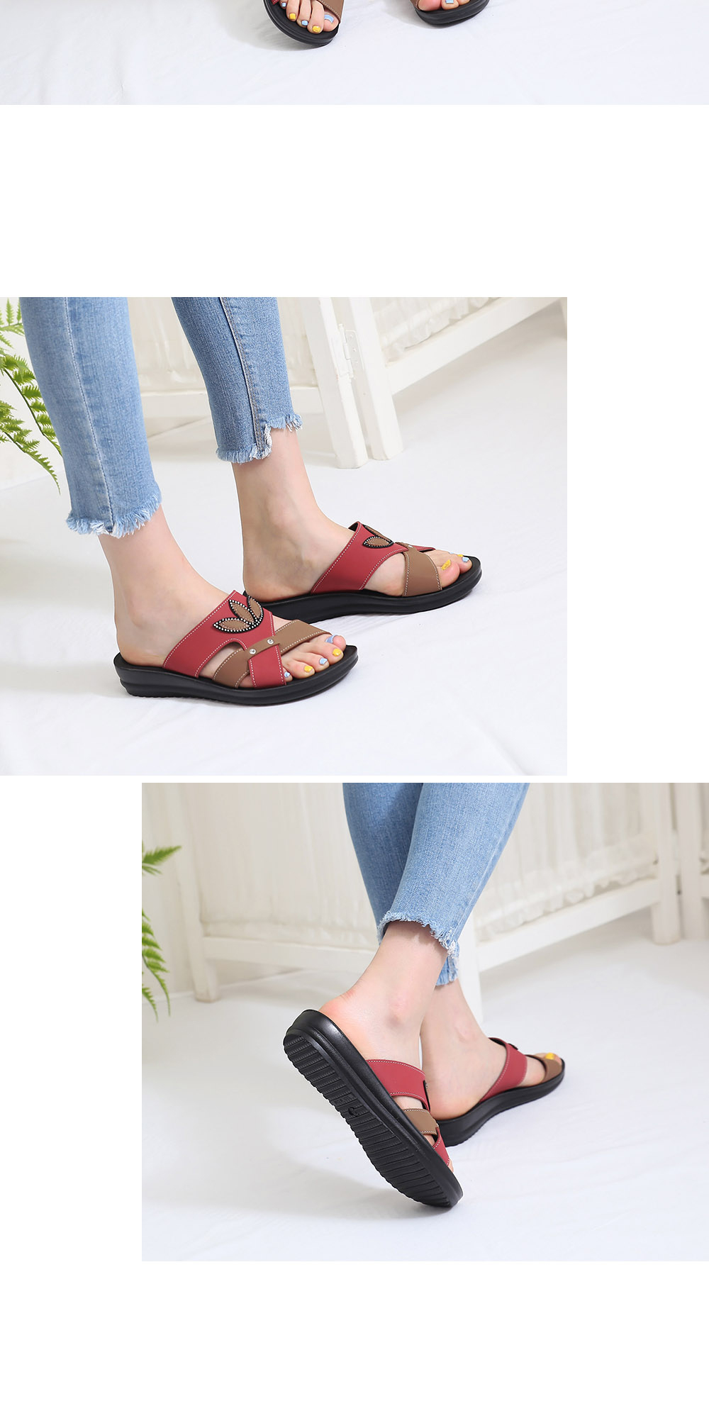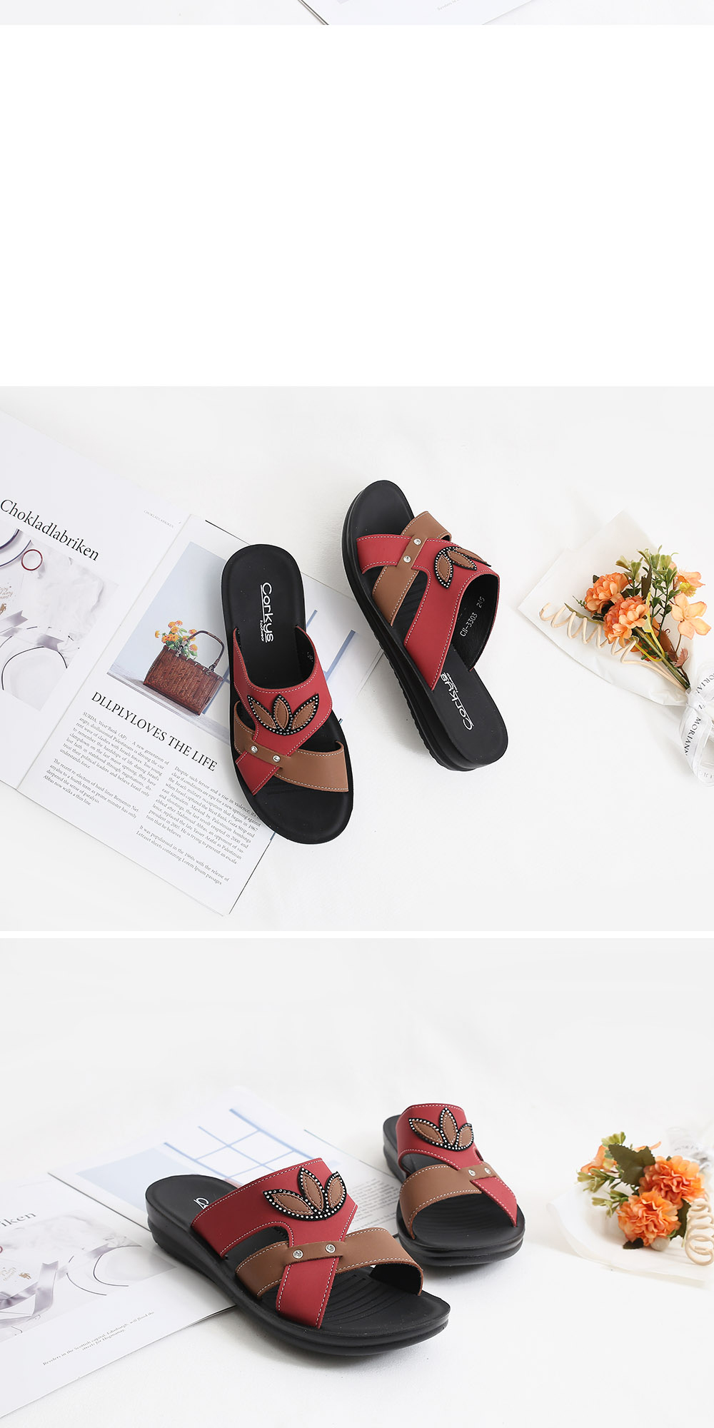 • 투톤 패치장식 발편한 실내화 슬리퍼