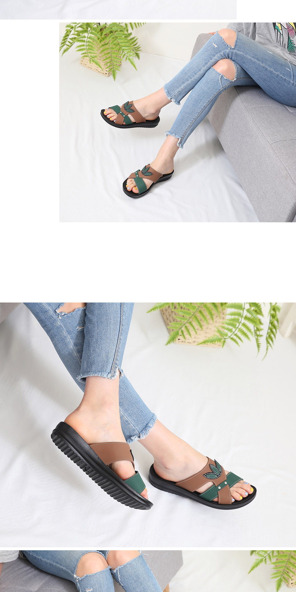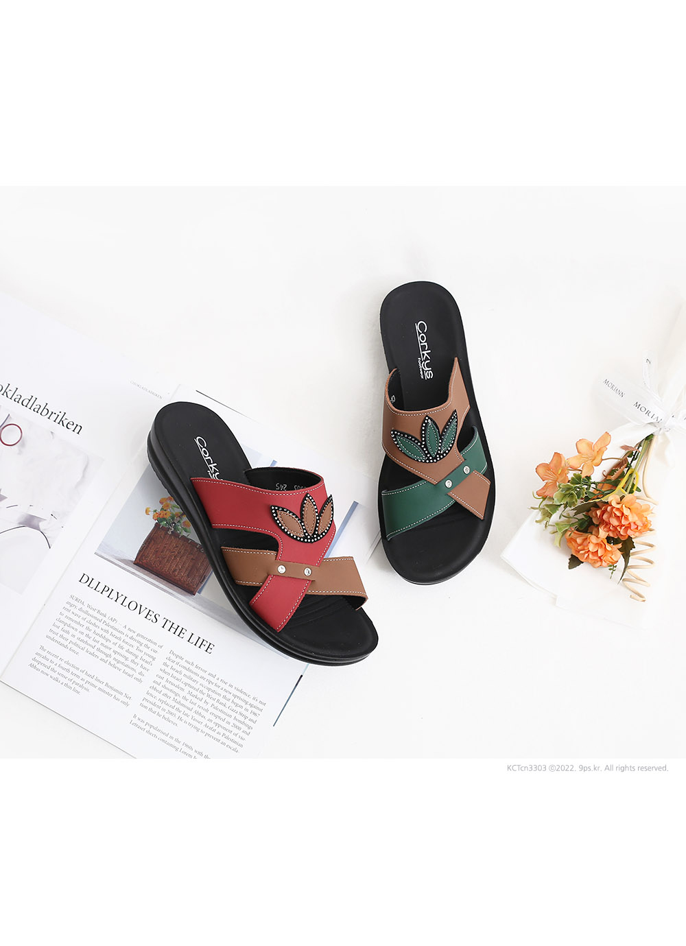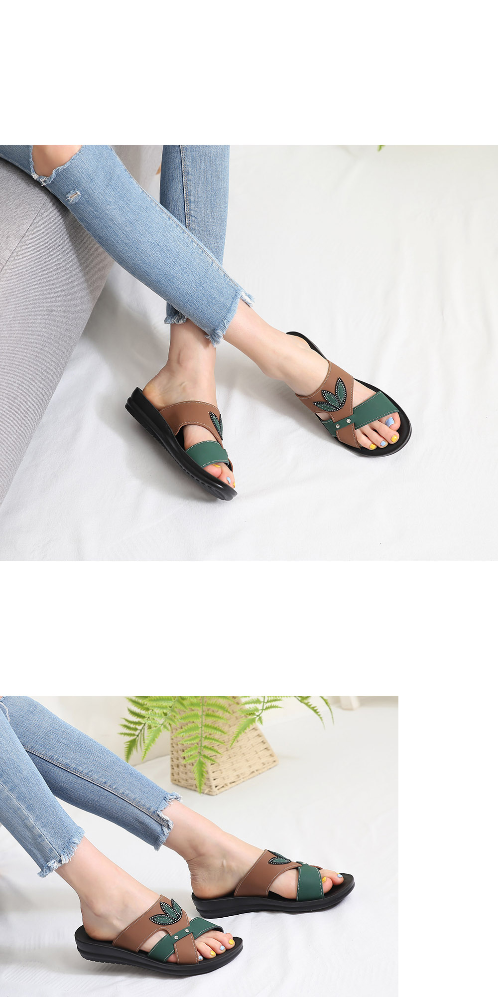 • 투톤 패치장식 발편한 실내화 슬리퍼