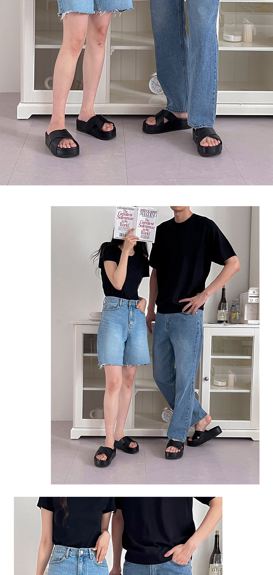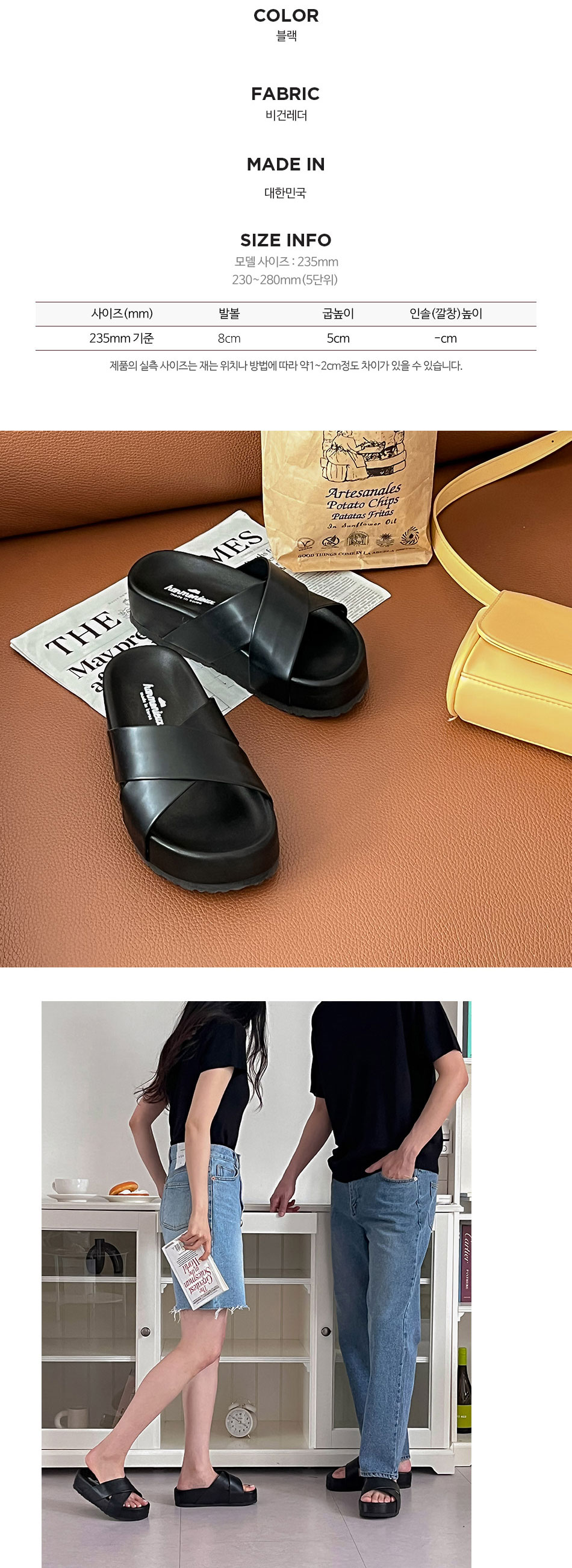공용 엑스 커플 통굽 키높이 슬리퍼