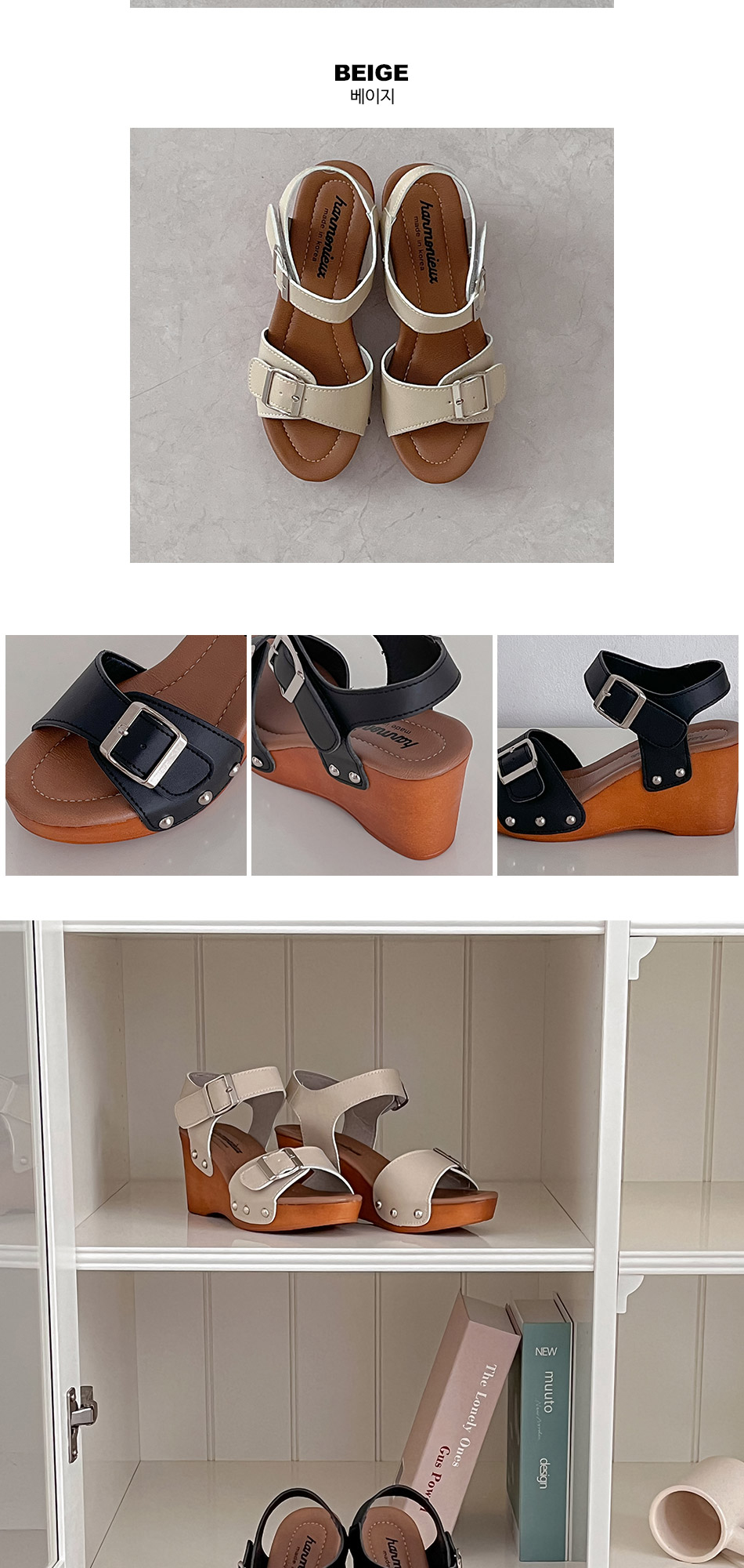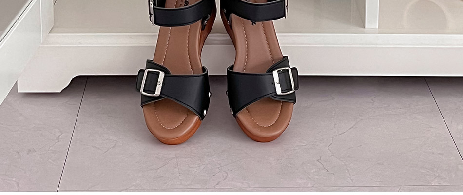 • 버클 스트랩 여름 웨지 통굽 샌들