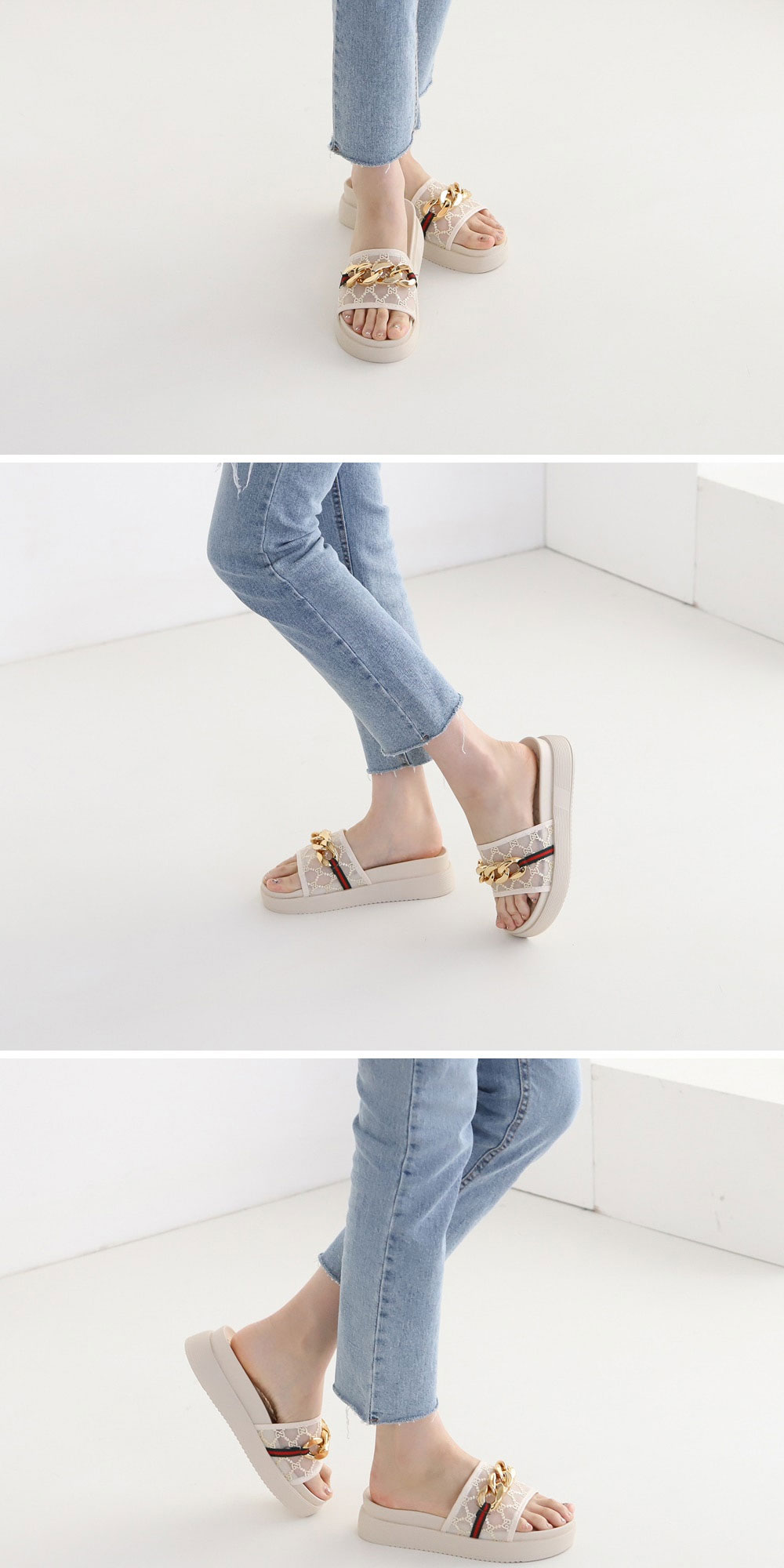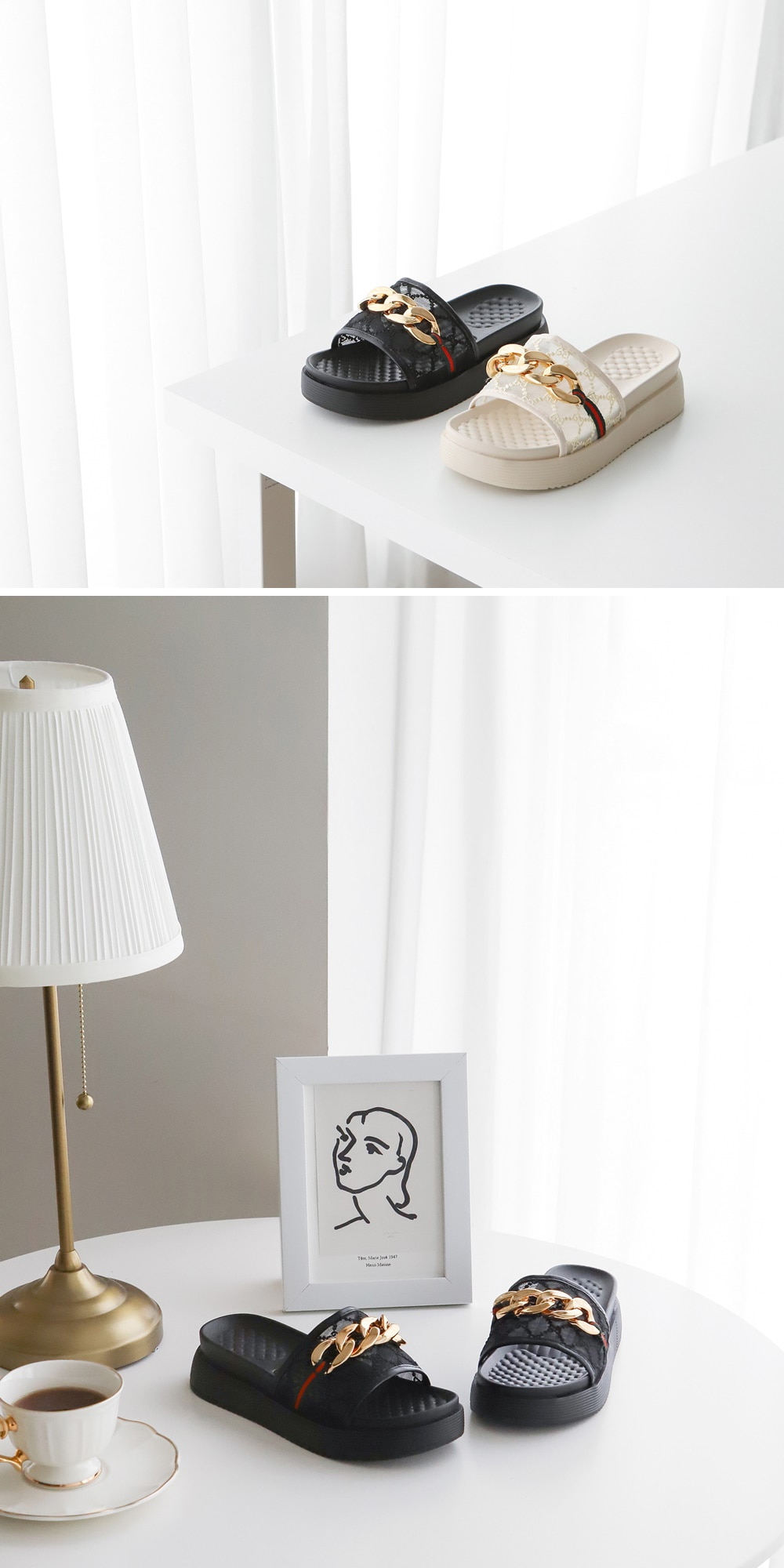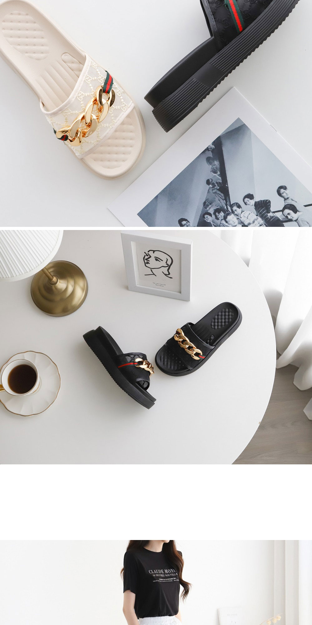 • 금장 시스루 여름 패션 통굽 슬리퍼