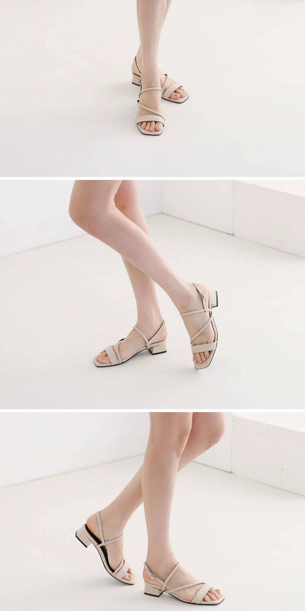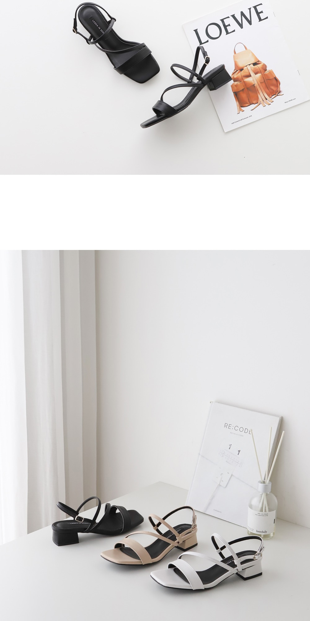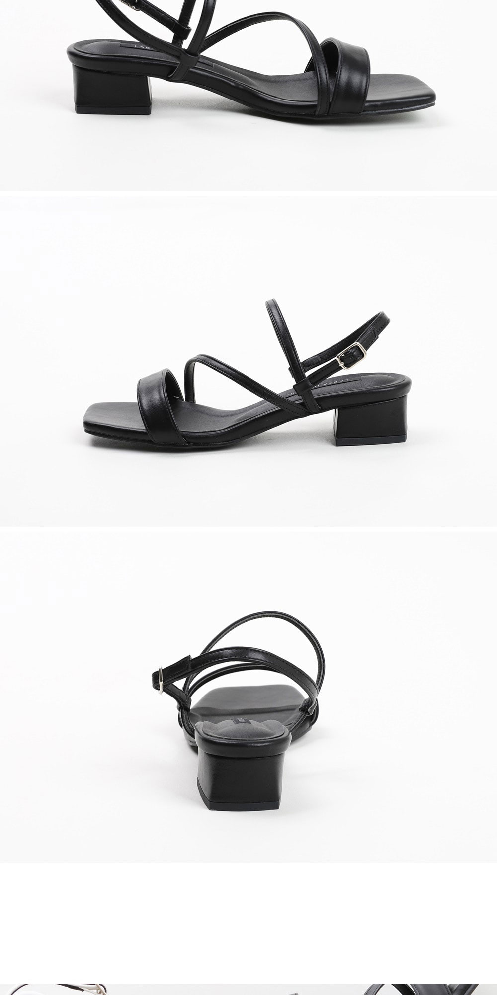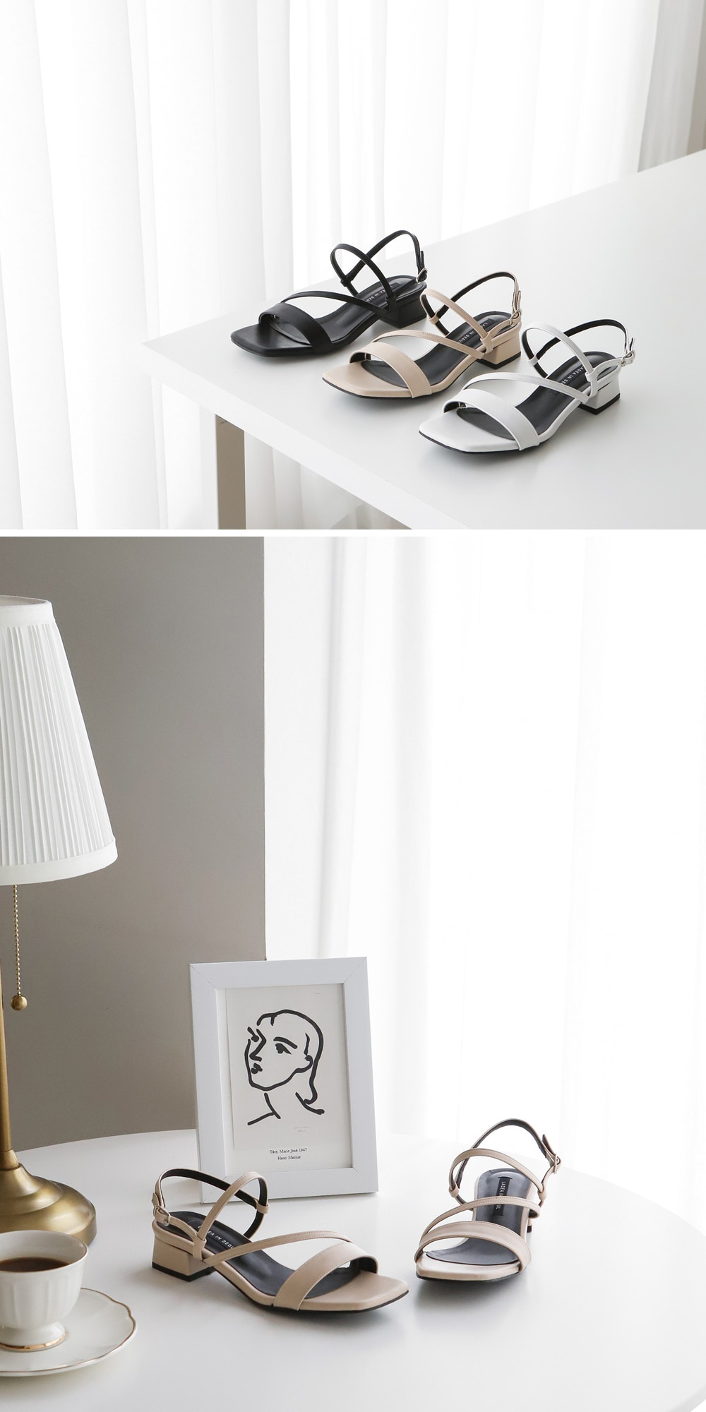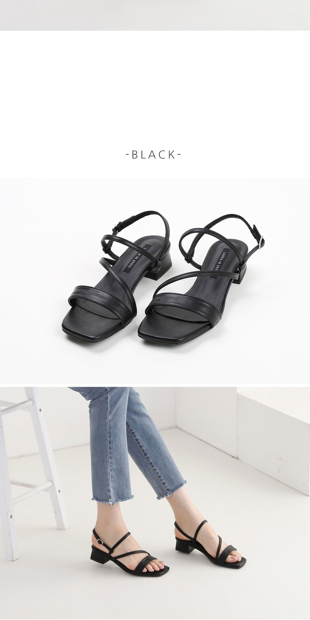 데일리 사각 슬림 스트랩 로우힐 샌들