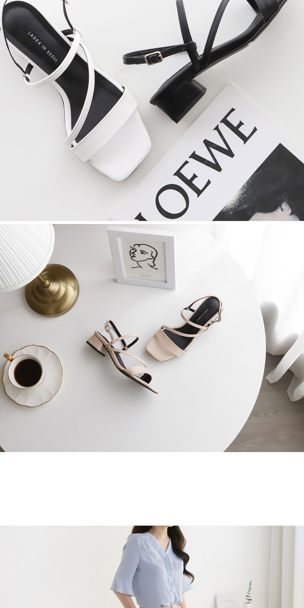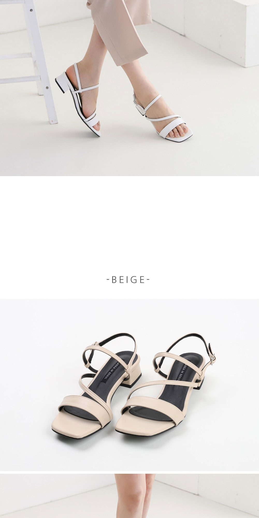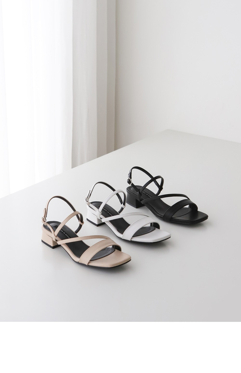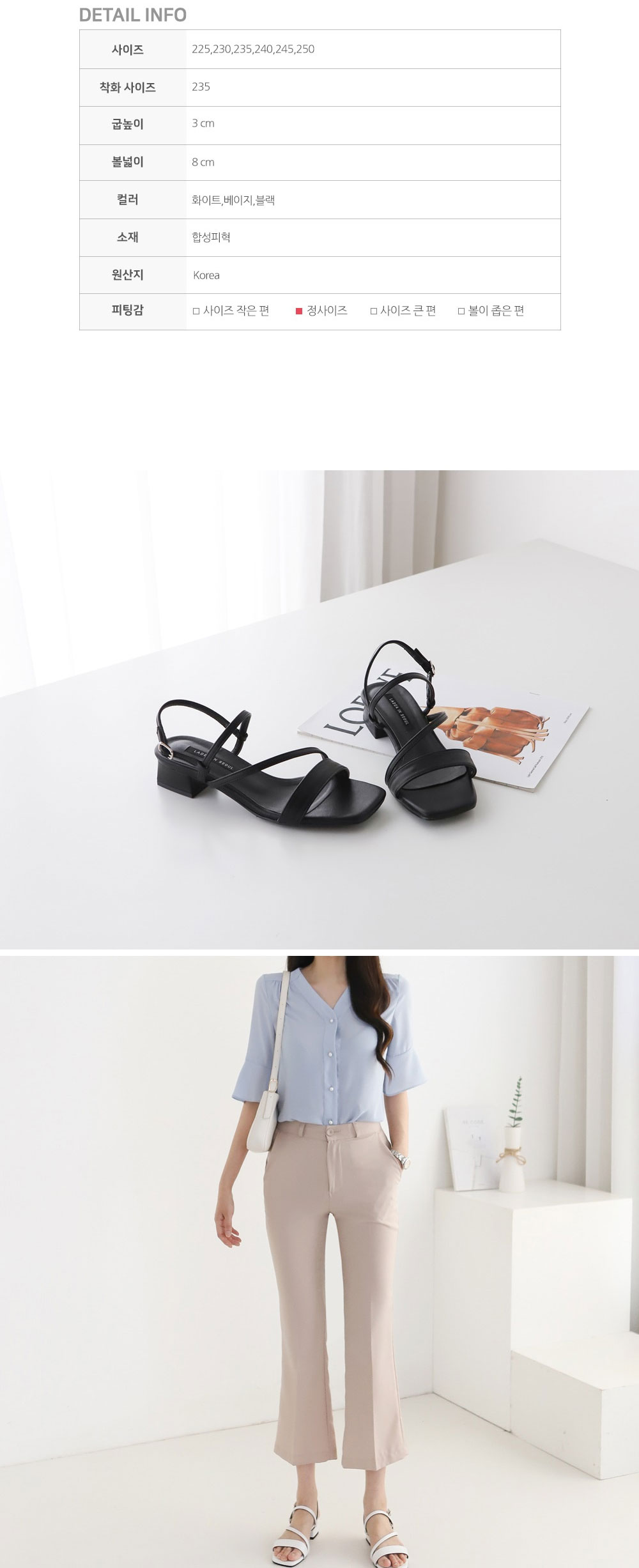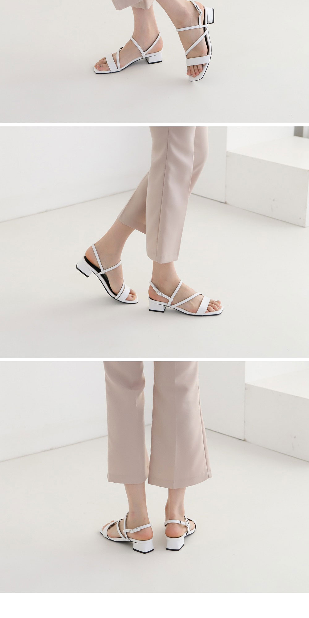 데일리 사각 슬림 스트랩 로우힐 샌들