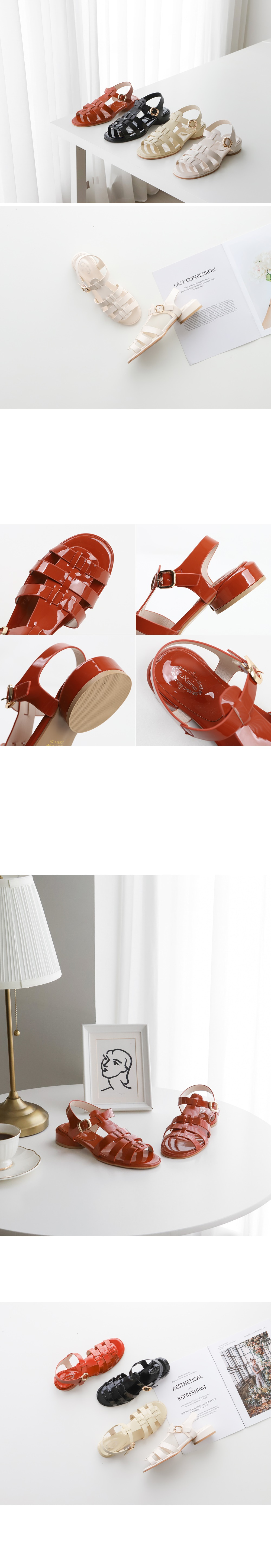 • 유광 글래디 스트랩 낮은굽 여름 샌들