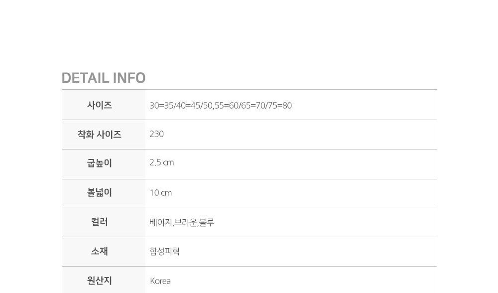 발길이 상세페이지 참고
