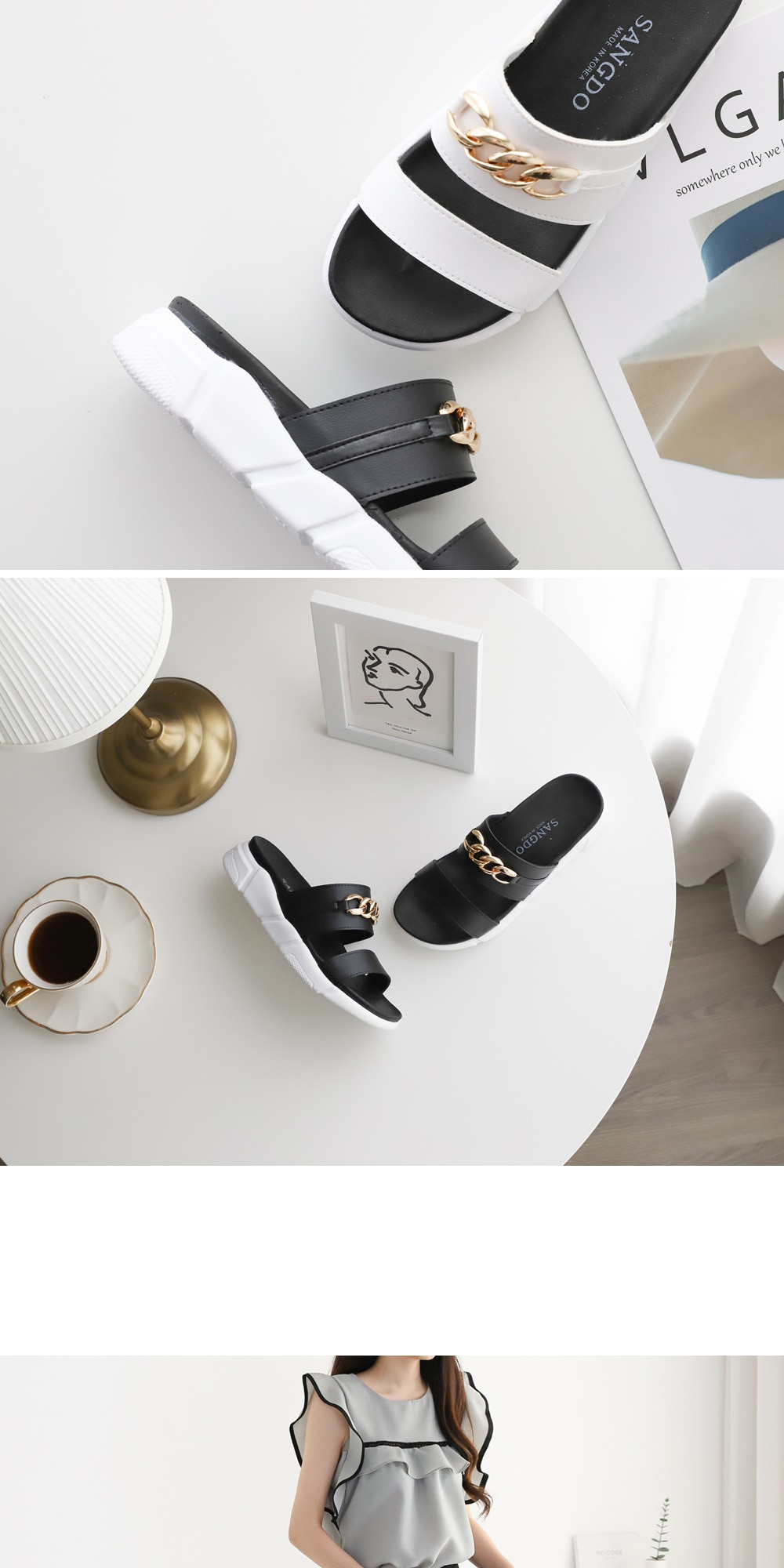 • 투톤 체인 스트랩 쿠션 컴포트 슬리퍼