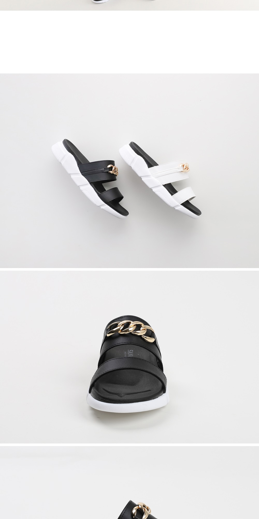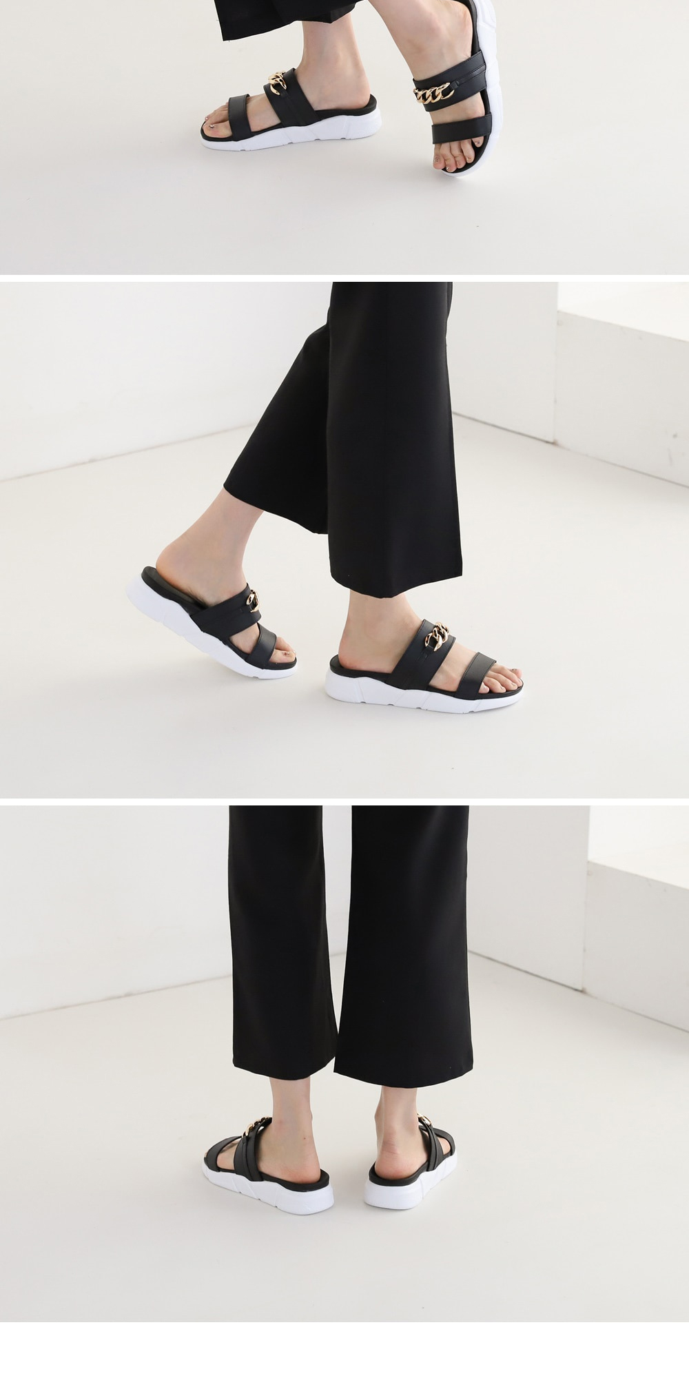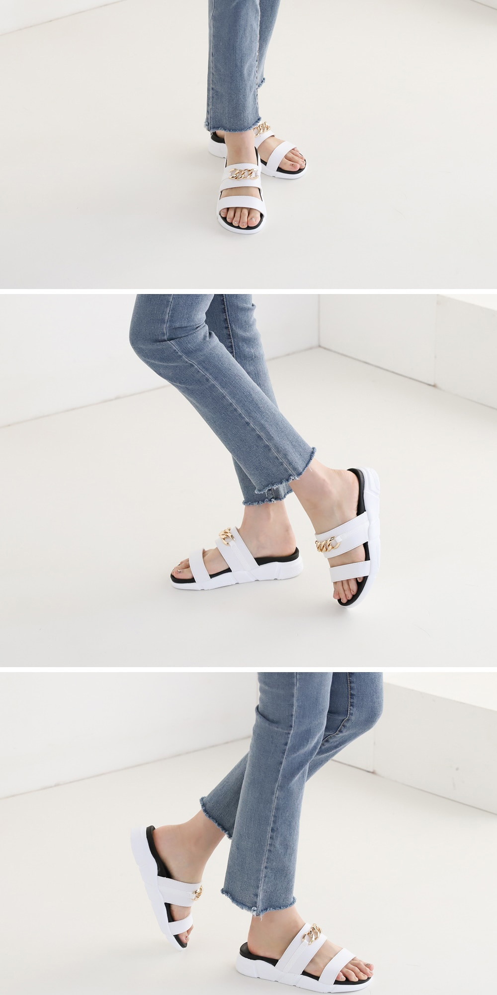 투톤 체인 스트랩 쿠션 컴포트 슬리퍼