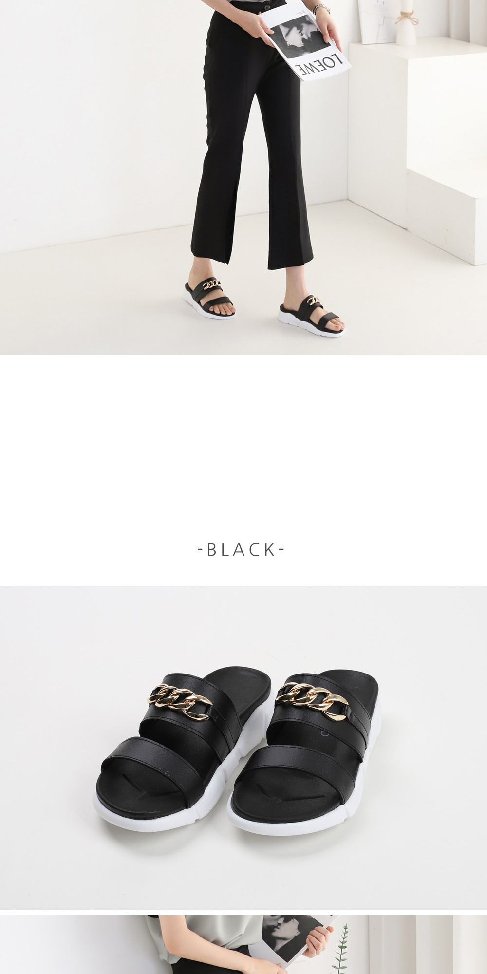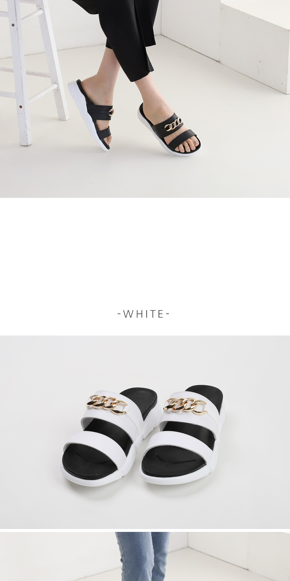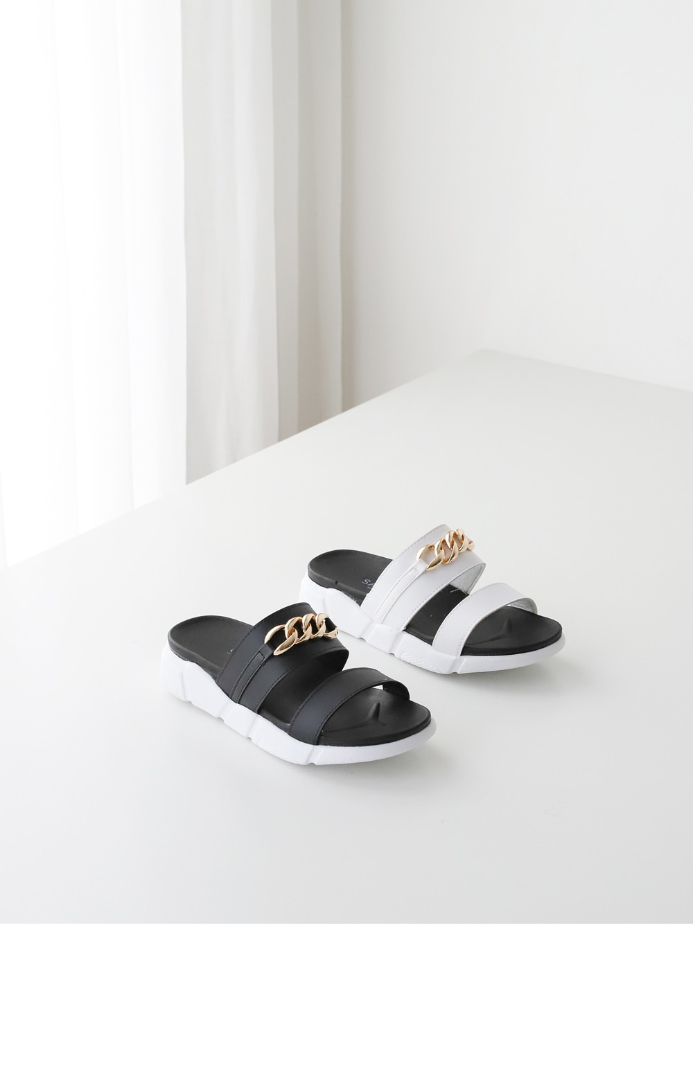 투톤 체인 스트랩 쿠션 컴포트 슬리퍼