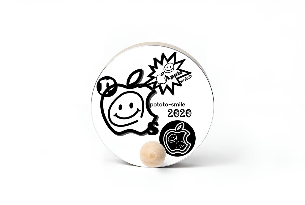 애플 실루엣 안에 Potato Smile의 시그니처 스마일을 담아낸 감각적인 디자인.