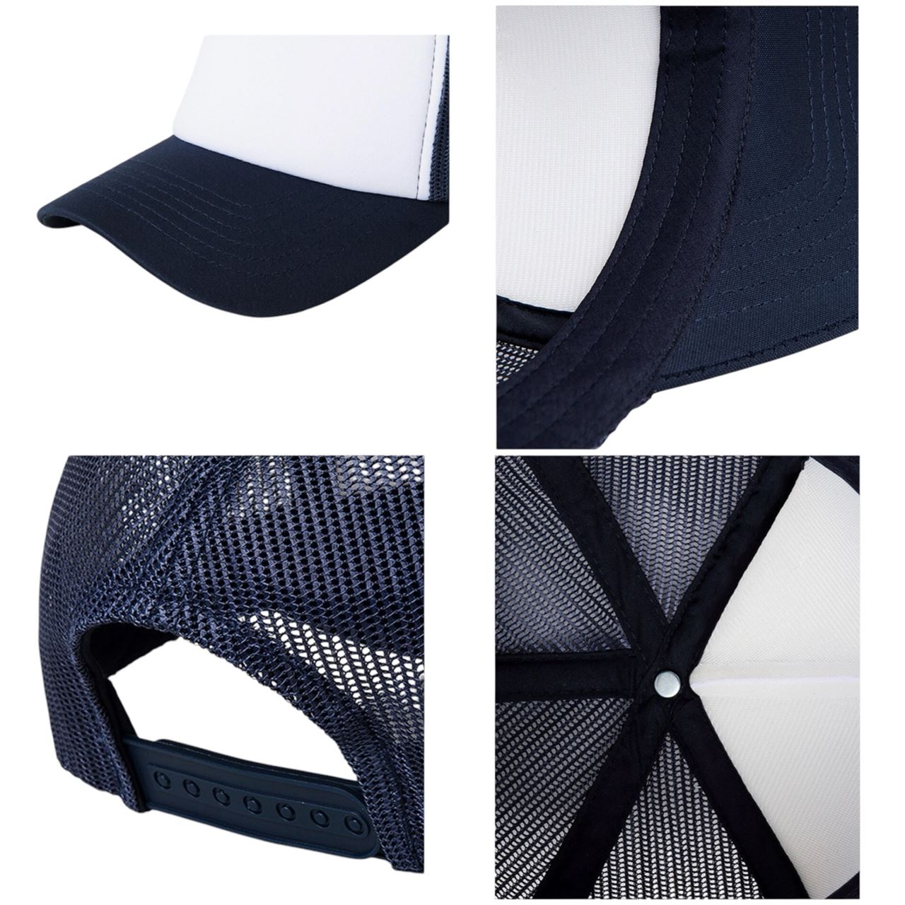 앞부분 폭신한 쿠션처리가 되어 있어 형태유지가 잘 되는 제품입니다. 뒷부분은 매쉬소재로 통기성이 좋아 여름철에 착용하기 적합합니다.