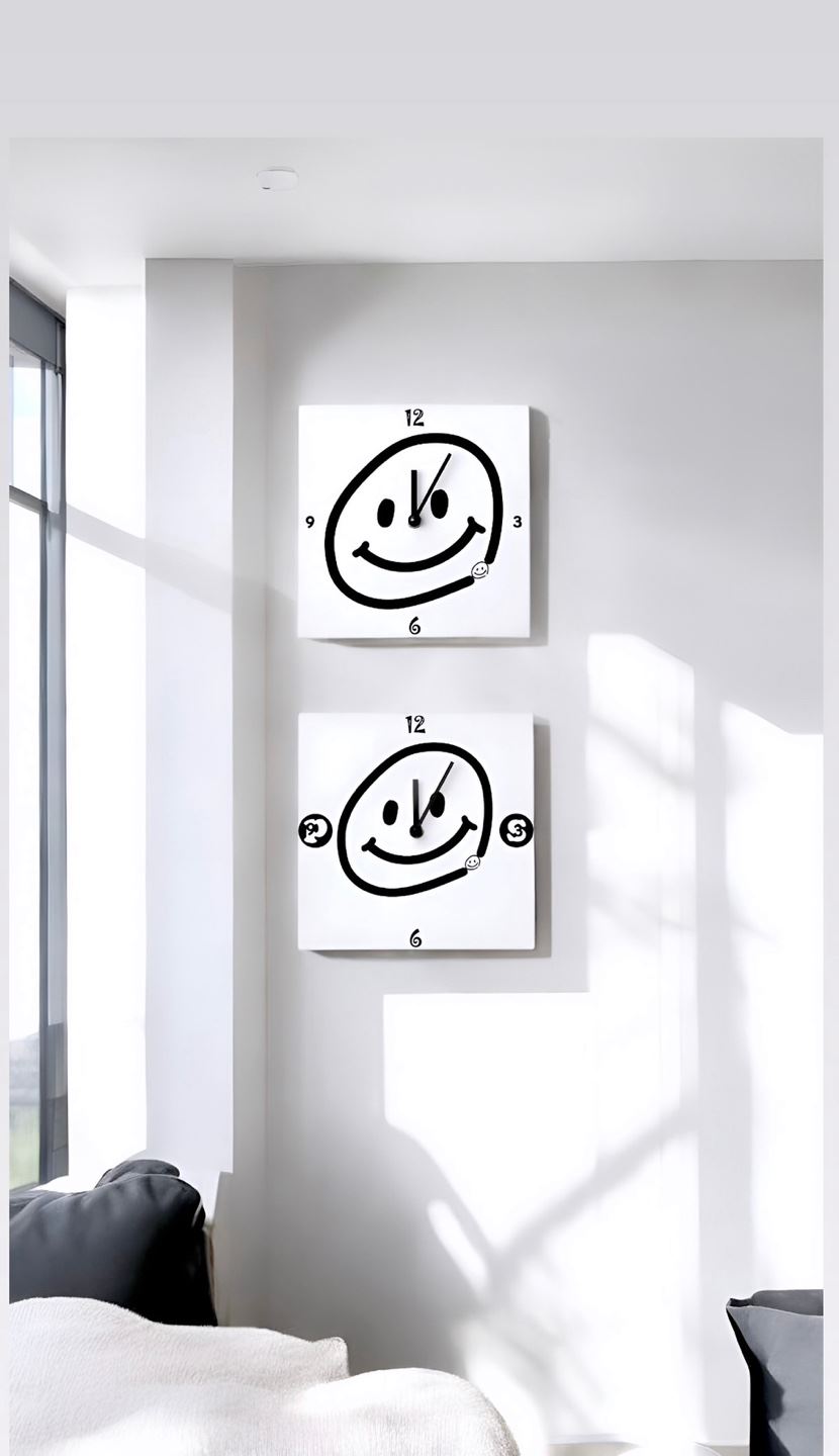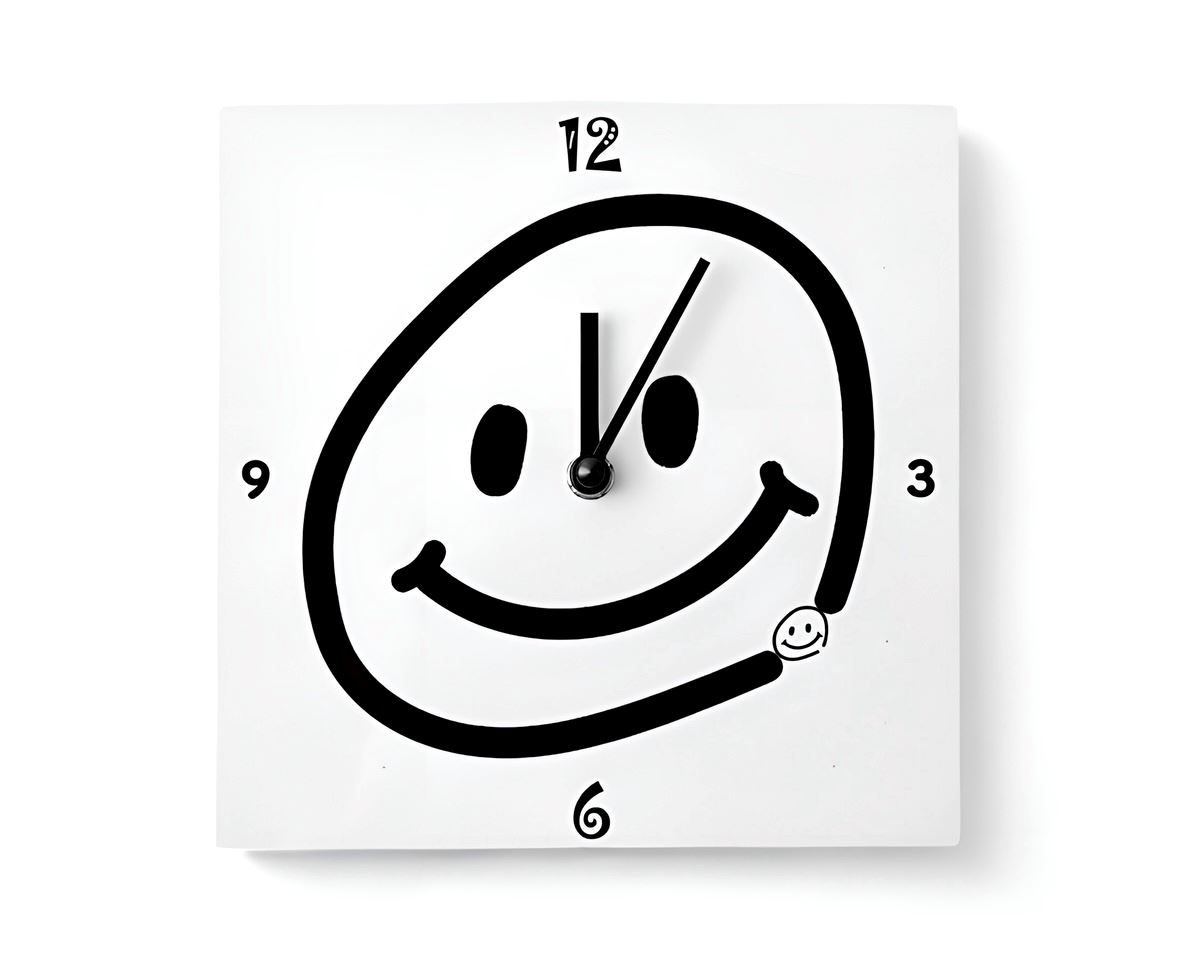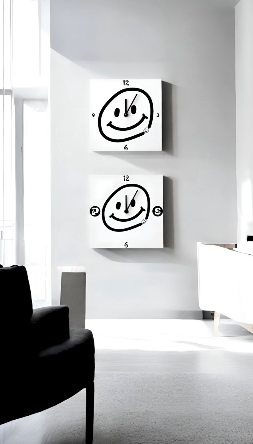• 미니멀 숫자 배열 + 초침이 웃음 위를 도는 유쾌한 디자인
