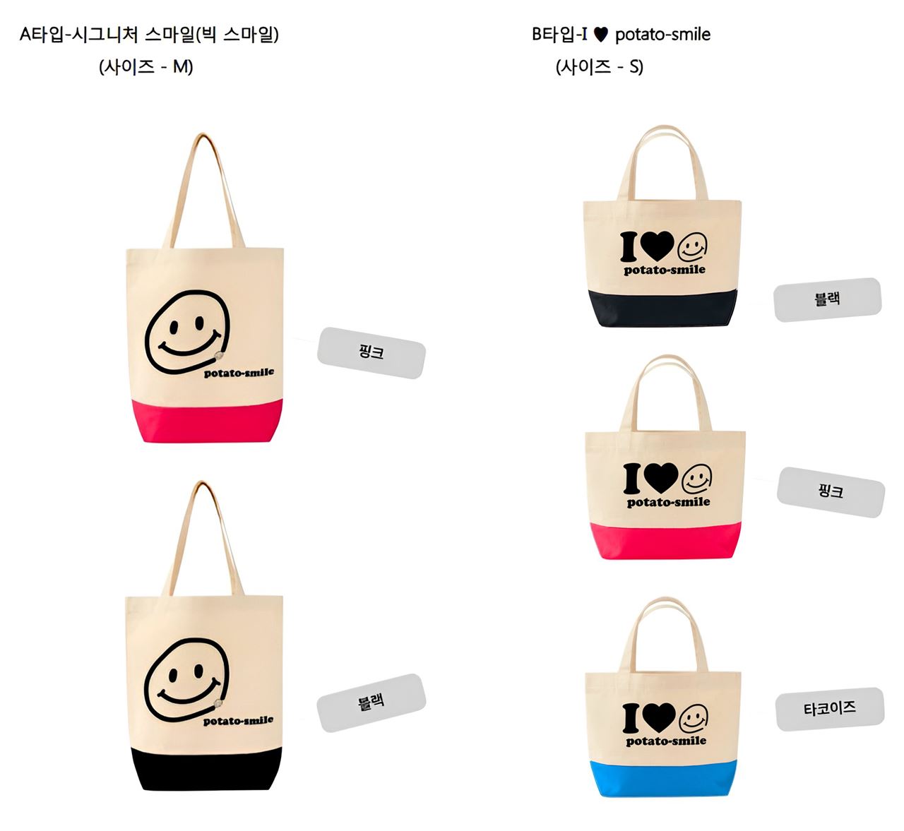 ㆍ포테토스마일(Potato Smile)의 모든 상품은 고객 맞춤 주문 제작 방식으로 제작됩니다.