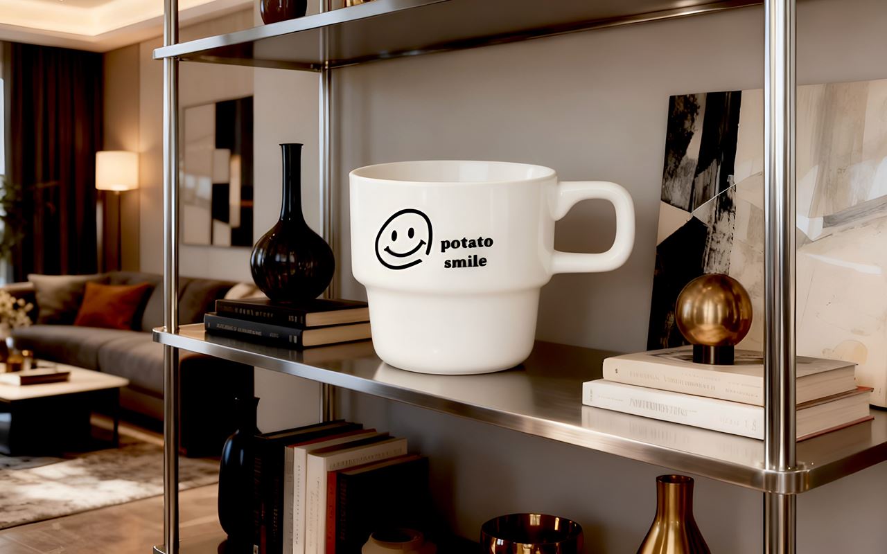 한정수량 29000원-> 18000원 화이트 출시 p.s 스태킹 머그컵 240ml(2color)  / 포테토스마일 Potato Smile / 디비디비 / 구매하기 / 특가할인