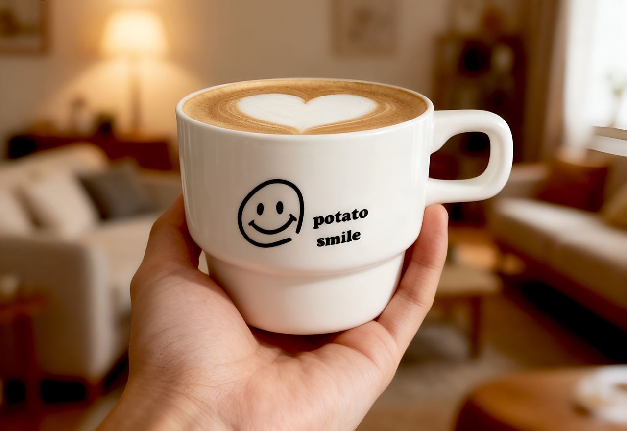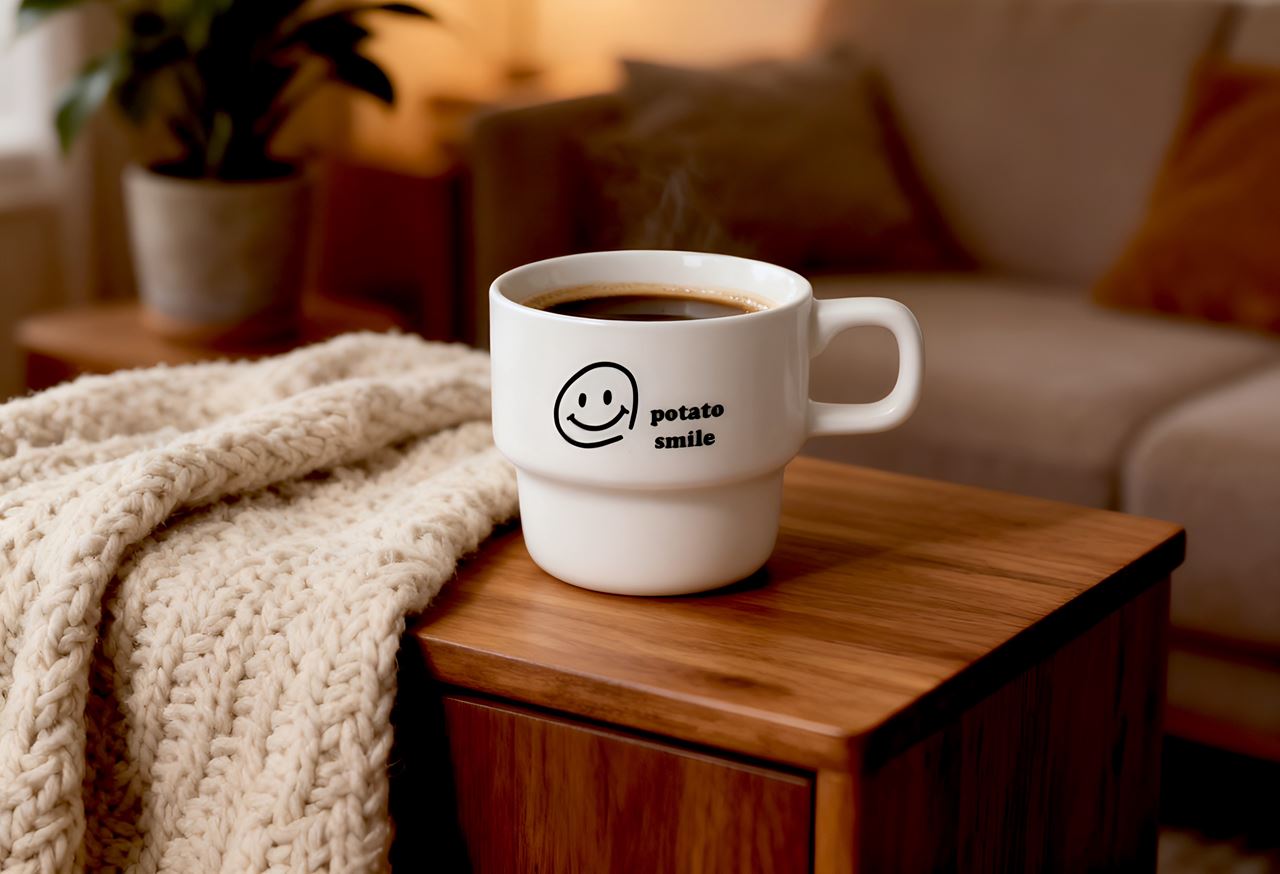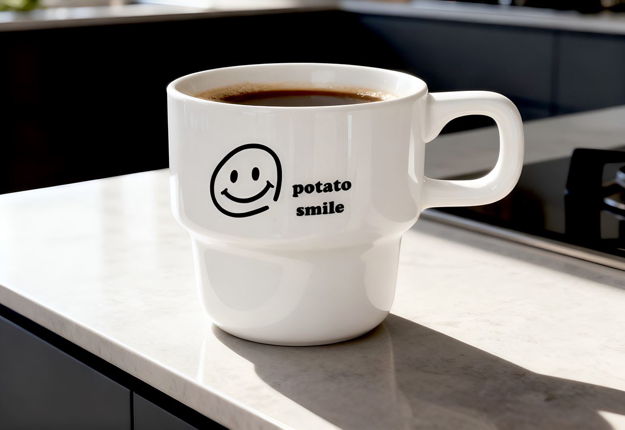 포테토스마일의 작은 미소를 담은 머그컵입니다.