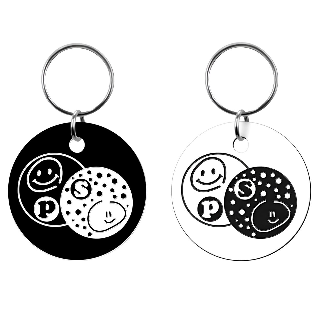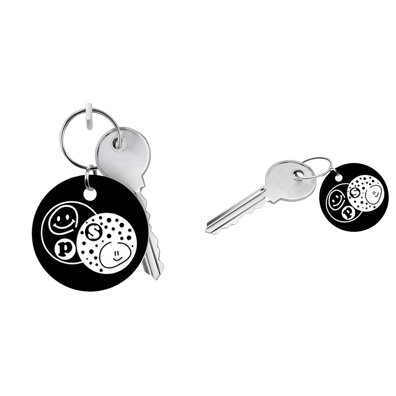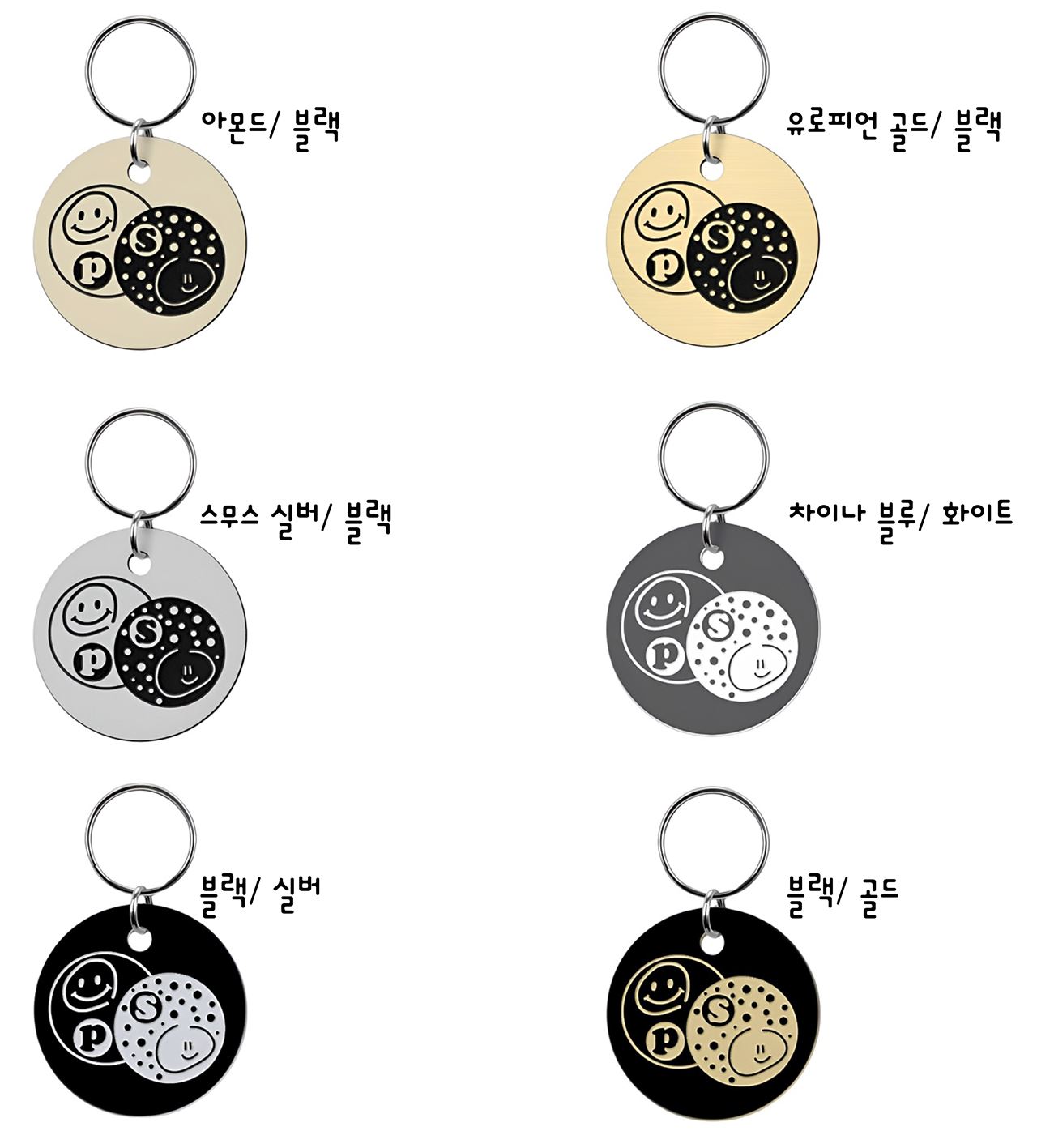 ✔️ 앞뒤 컬러가 다른 투톤 알루미늄 키링으로, 정면에서는 단정한 블랙&화이트,