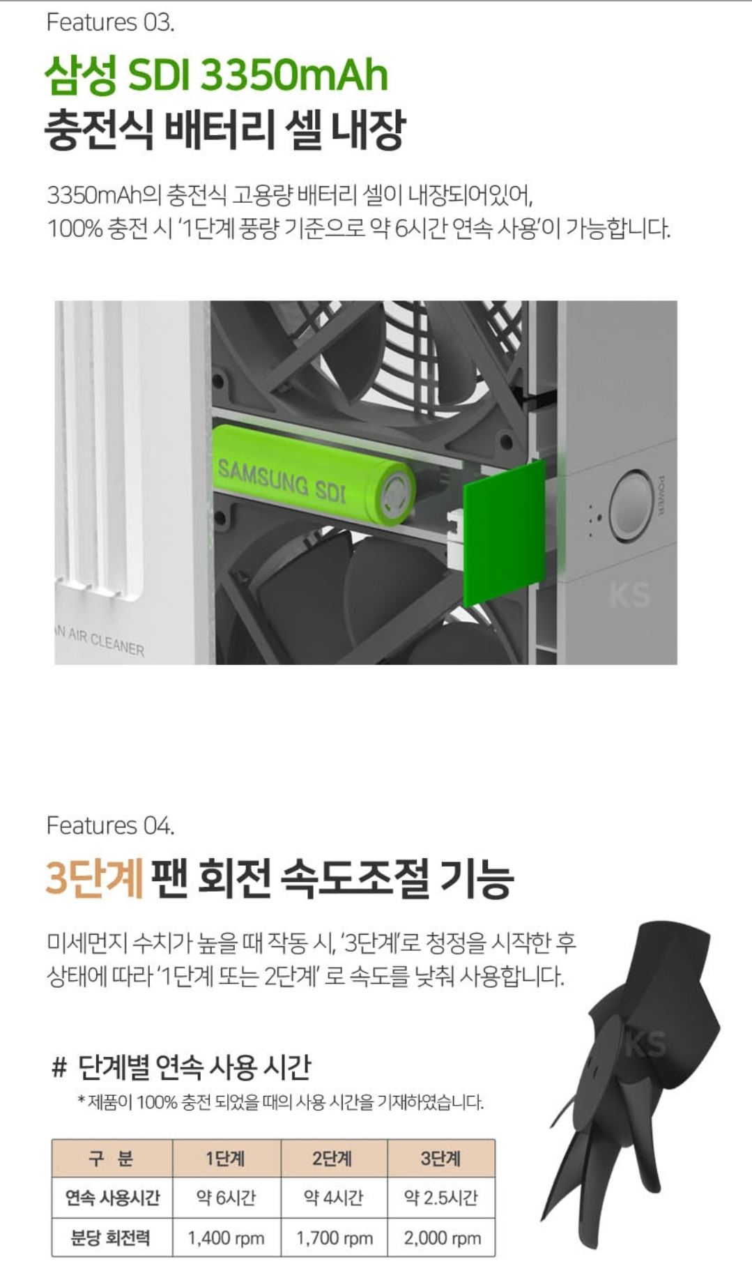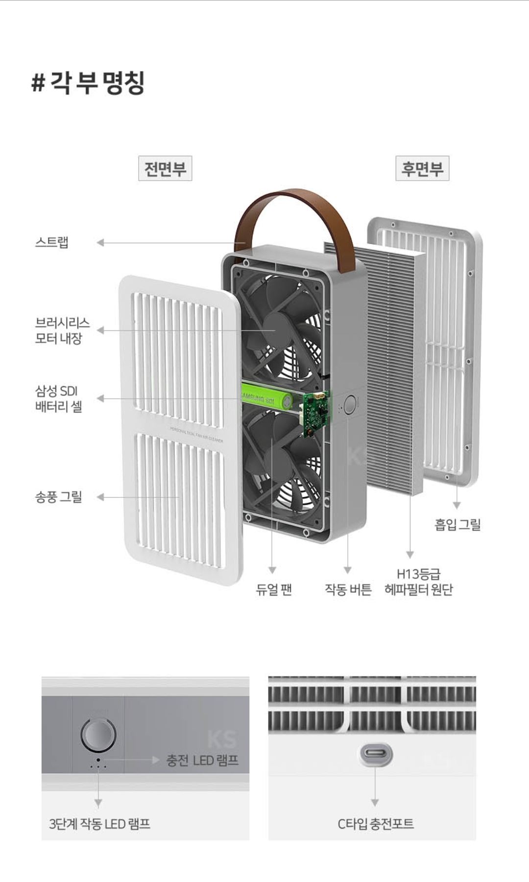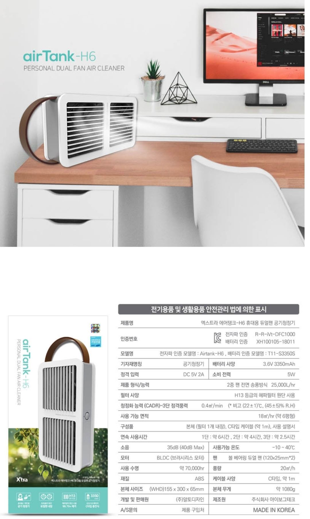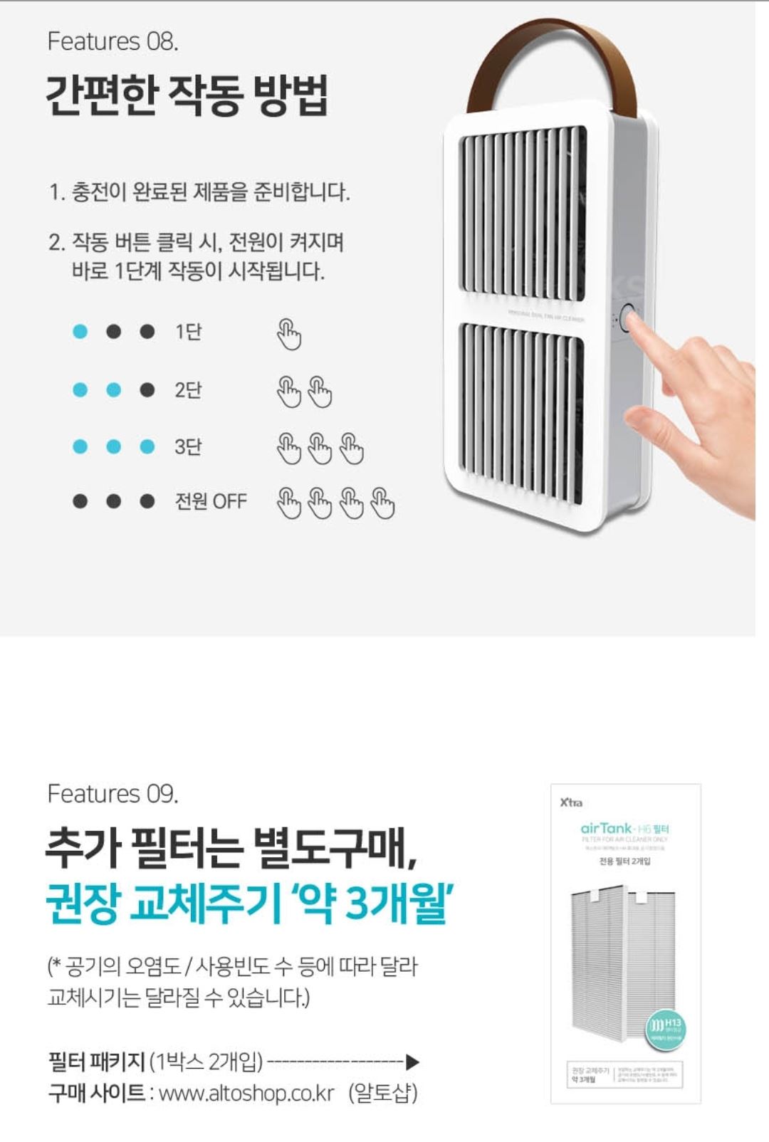 • 엑스트라 에어탱크 휴대용 듀얼팬 공기청정기