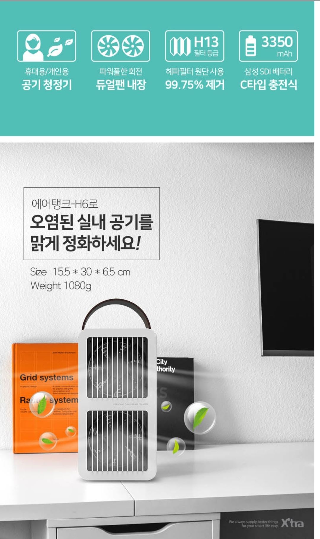 엑스트라 에어탱크 휴대용 듀얼팬 공기청정기