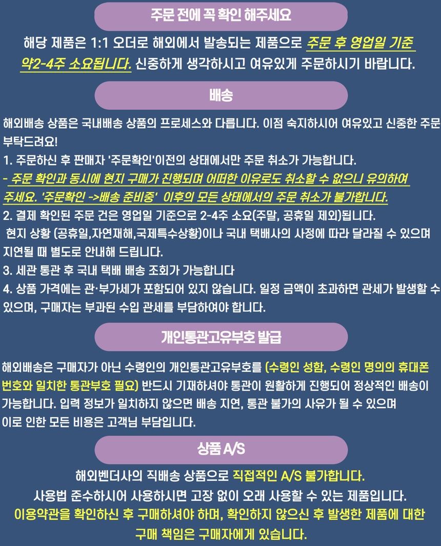 ㆍ 반품/교환 시 고객님 귀책사유로 인해 수거가 지연될 경우에는 반품이 제한될 수 있습니다.