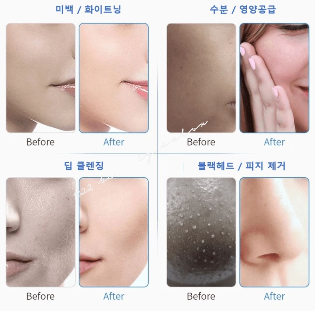 :모공 속 피지,블랙헤드,화이트 헤드,뾰루지,노폐물들의 뿌리까지 뽑아내어 딥 클렌징을 해줌 동시에 수분 공급해 줍니다.
