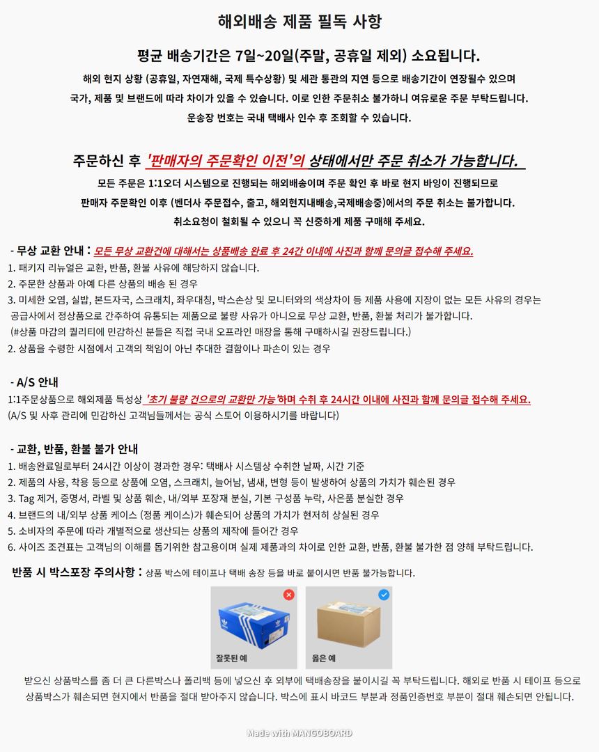 ㆍ 반품/교환 시 고객님 귀책사유로 인해 수거가 지연될 경우에는 반품이 제한될 수 있습니다.