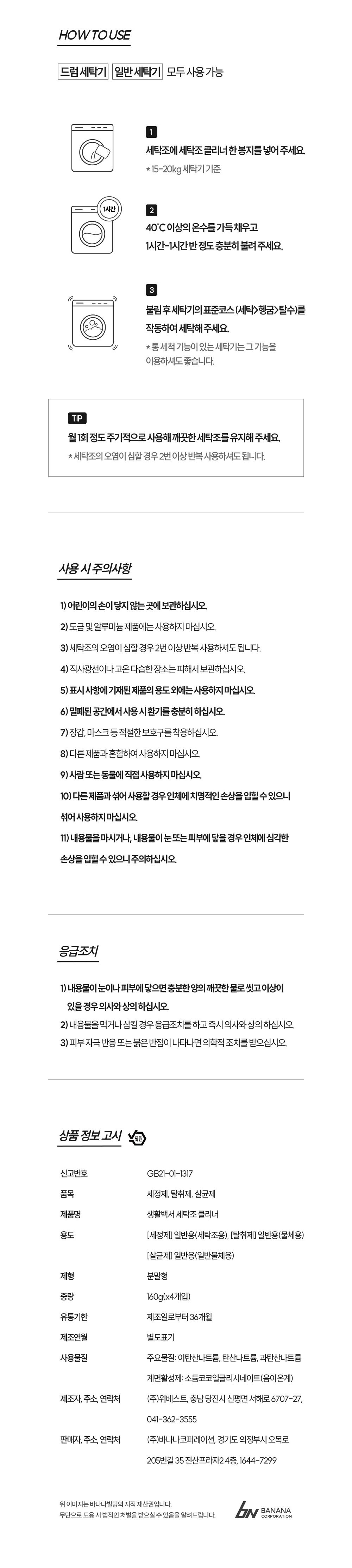 품목 및 제품명 생활백서 세탁조 클리너