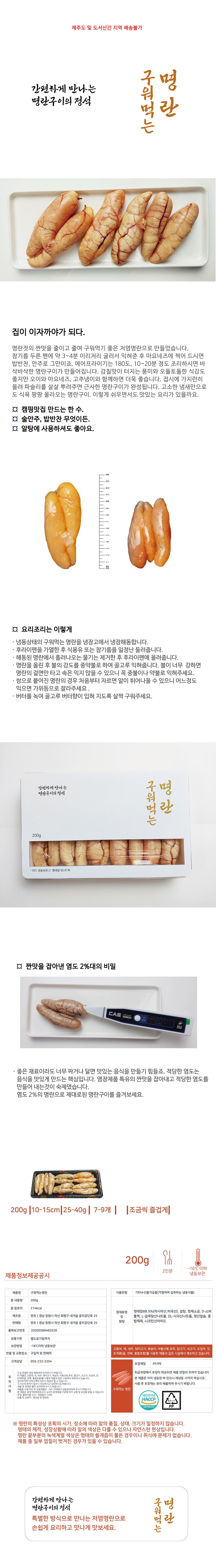 • 구워먹는 명란구이 저염 백명란 200g
