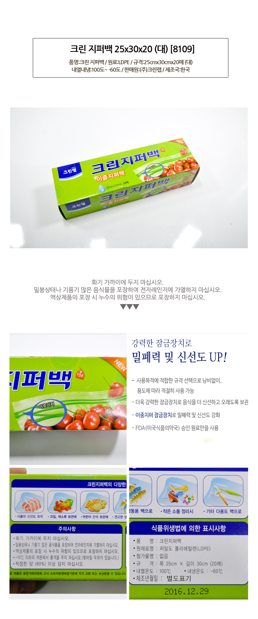 • 크린랲 위생 이중지퍼백 대형 20매 (25X30cm)
