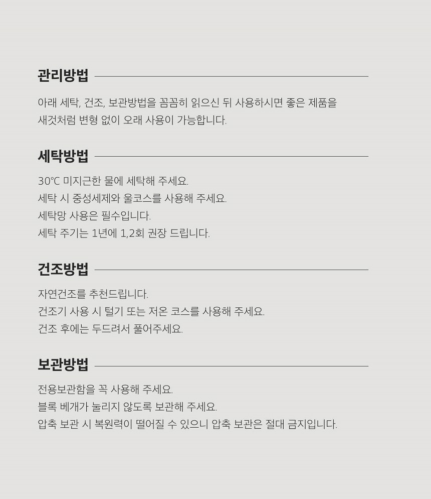 세탁방법 및 취급 시 주의사항 상세페이지 참조