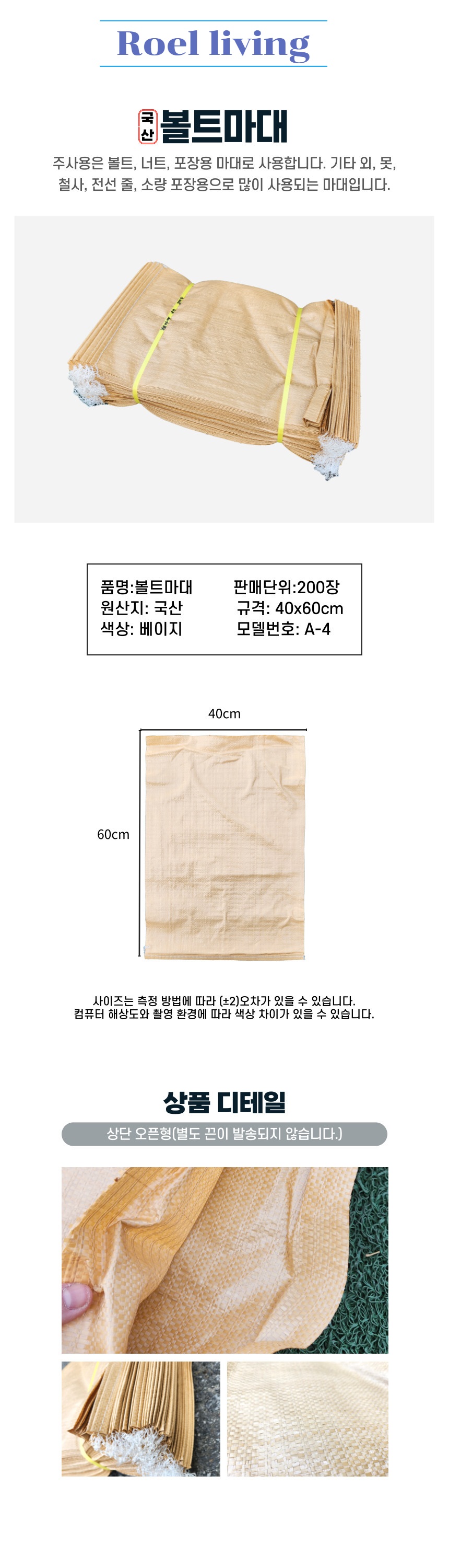 로엘리빙 국산 볼트마대 40X60 200매 작업 산업 공업 농업용 마대 / 로엘리빙 / 디비디비 / 구매하기 / 특가할인