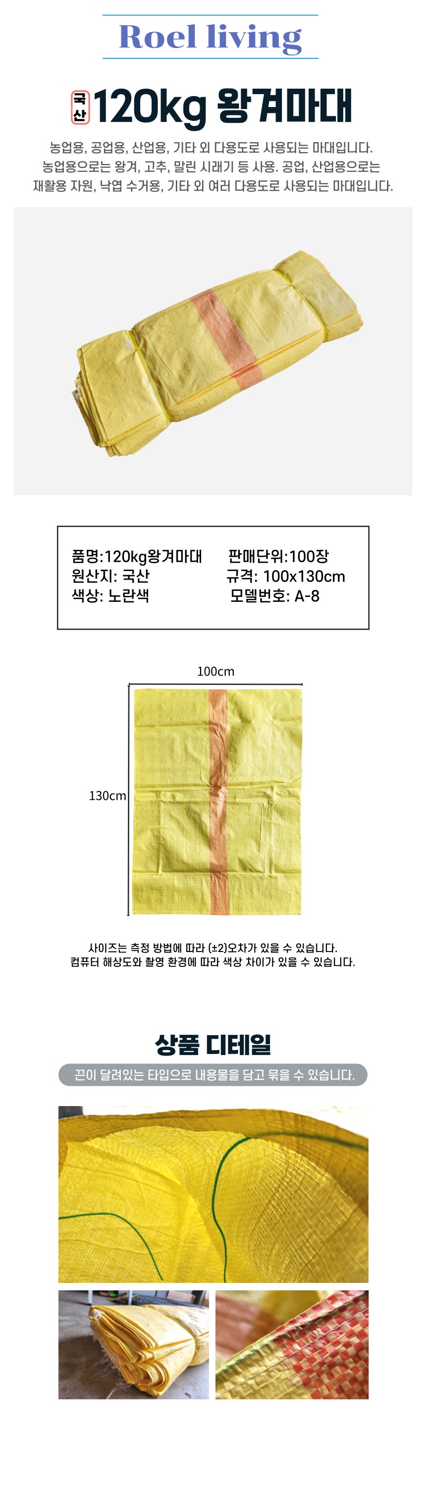 로엘리빙 국산 왕겨마대 120kg 100x130cm 100매 작업 산업 공업 농업용 / 로엘리빙 / 디비디비 / 구매하기 / 특가할인
