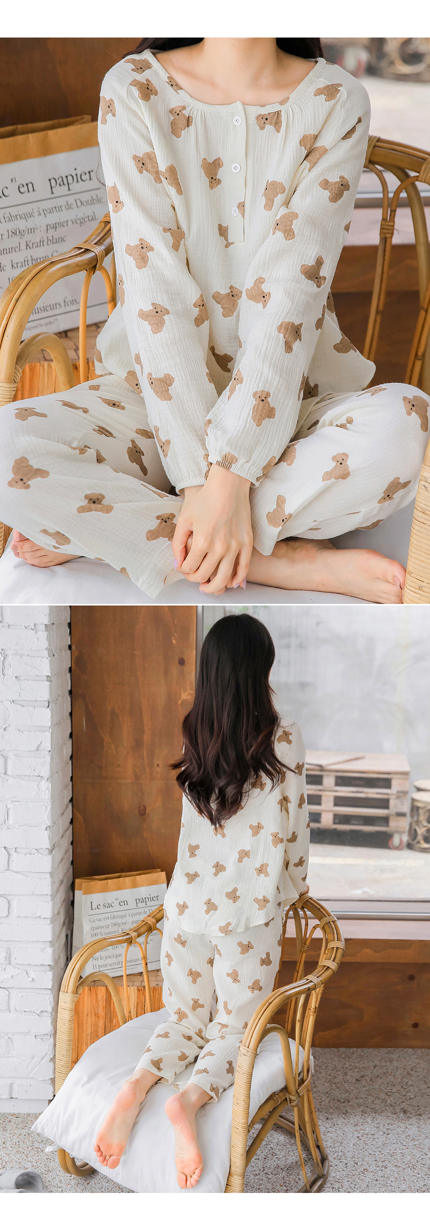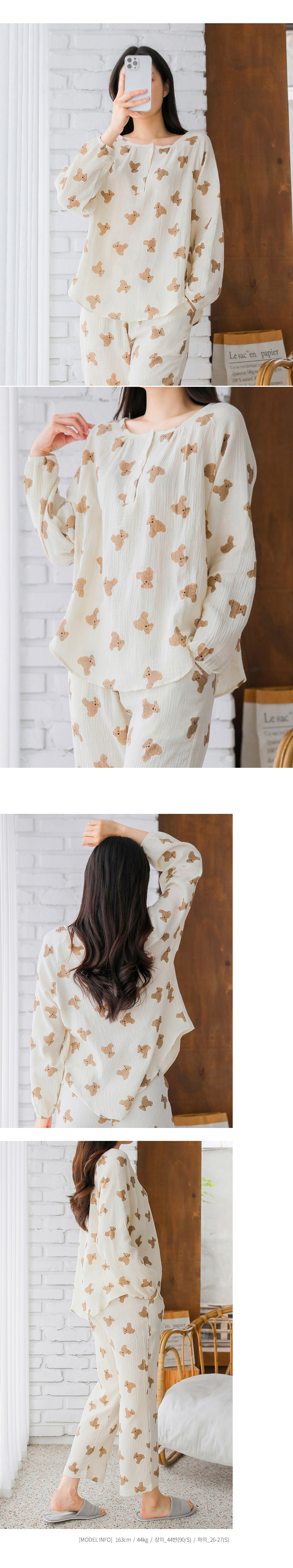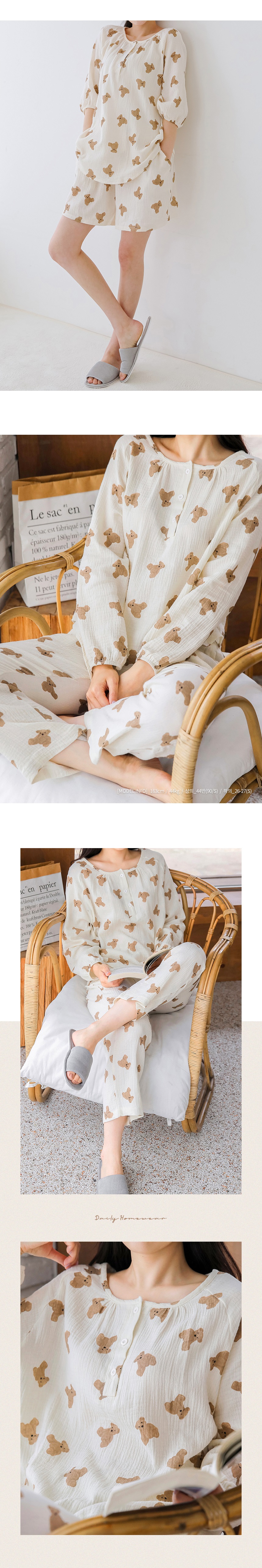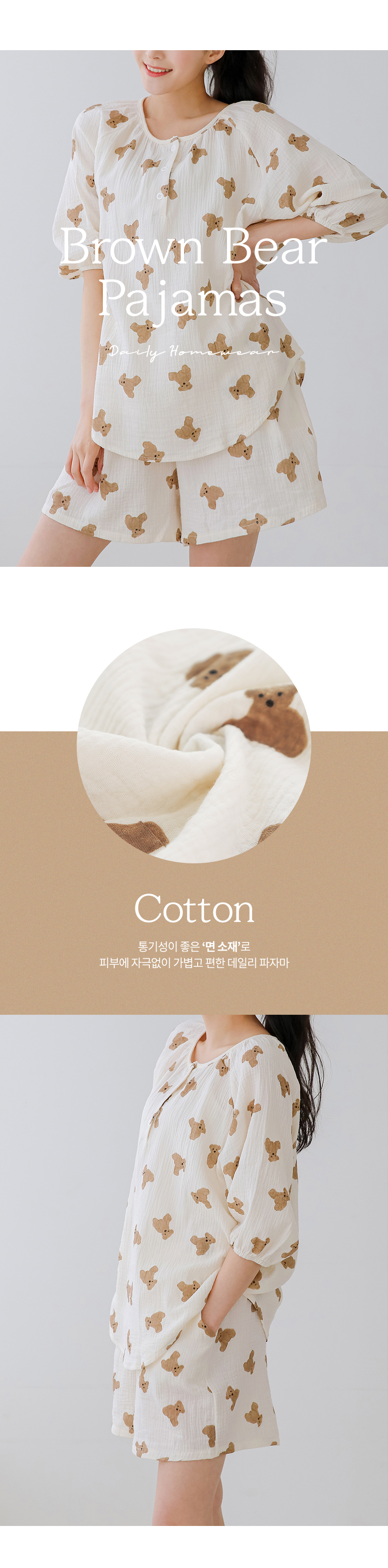 • 로엘 브라운베어 파자마 반팔세트 귀여운 홈웨어 저자극 잠옷 상하세트