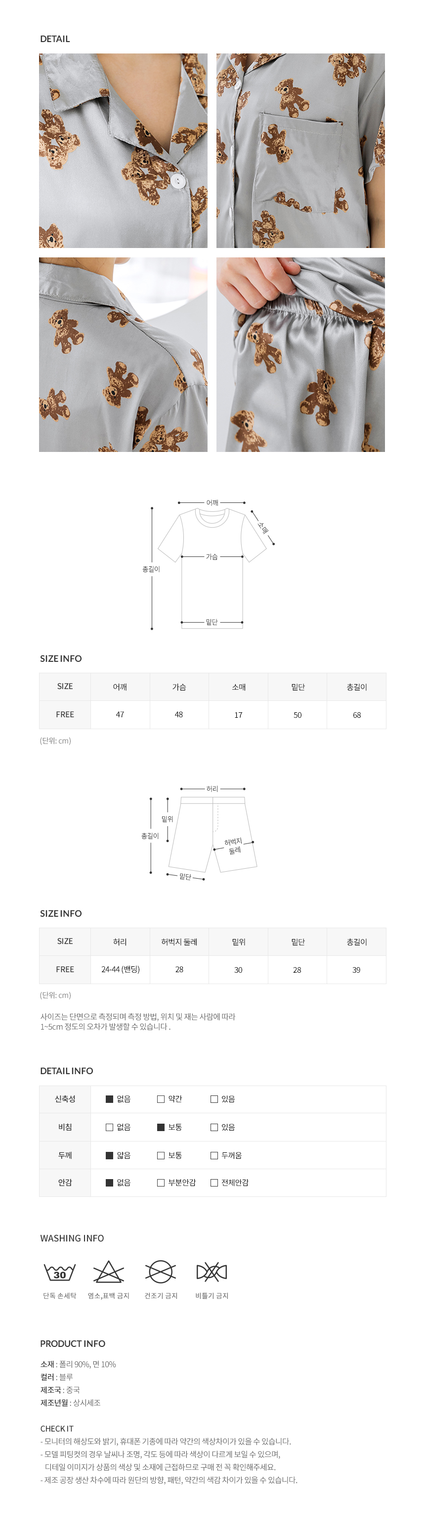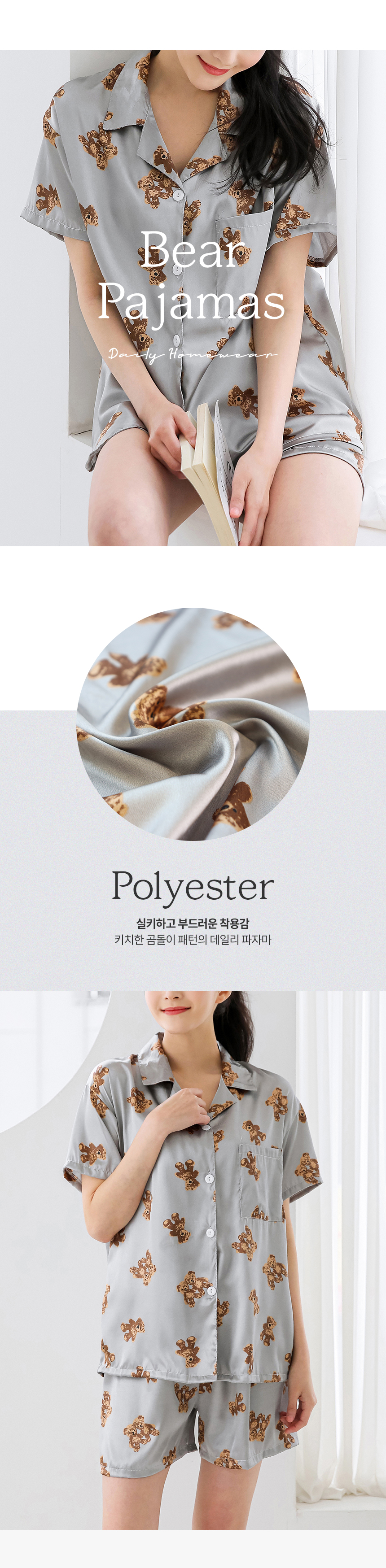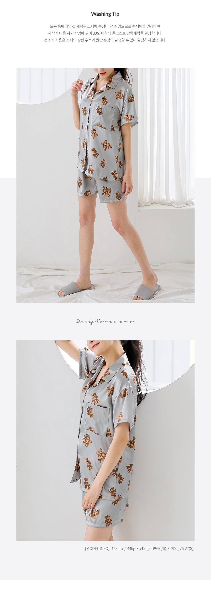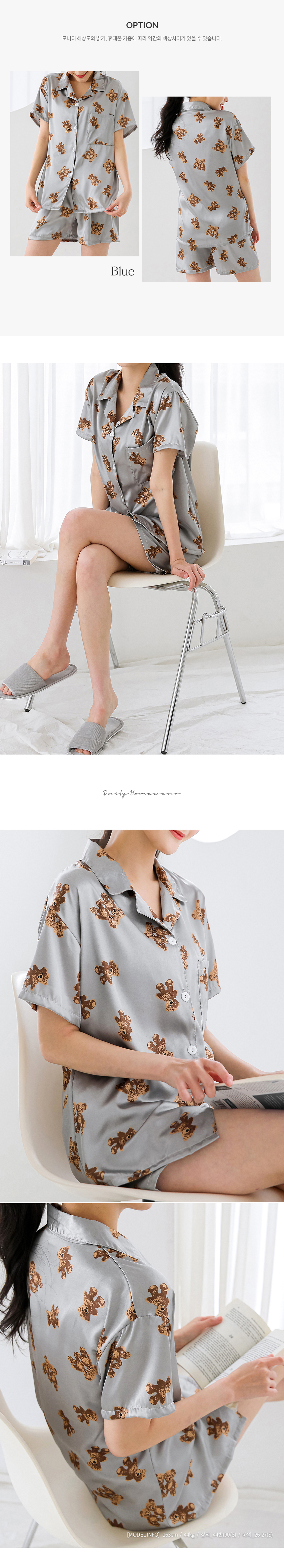 • 로엘 테디베어 파자마 실키 반팔 홈웨어 저자극 잠옷 상하세트