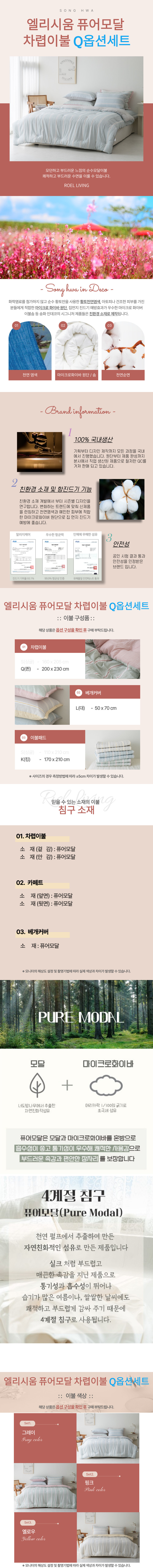 송화침장 로엘 엘리시움 퓨어모달 차렵이불 Q(퀸)옵션세트 사계절침구