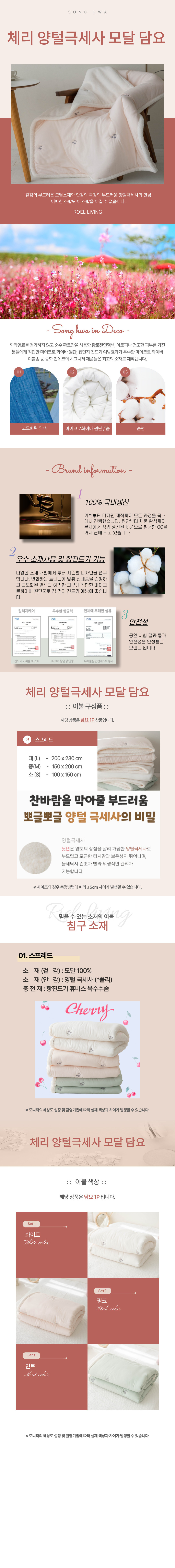 로엘 체리 양털극세사 모달 담요 송화침장 겨울침구