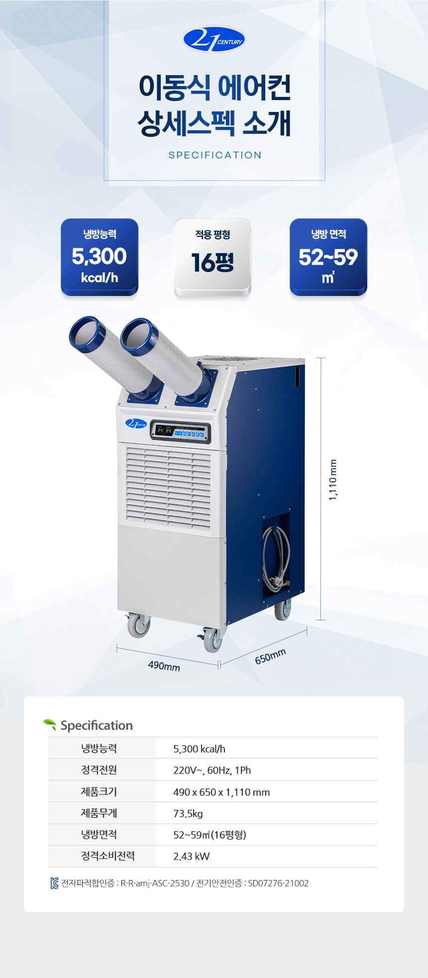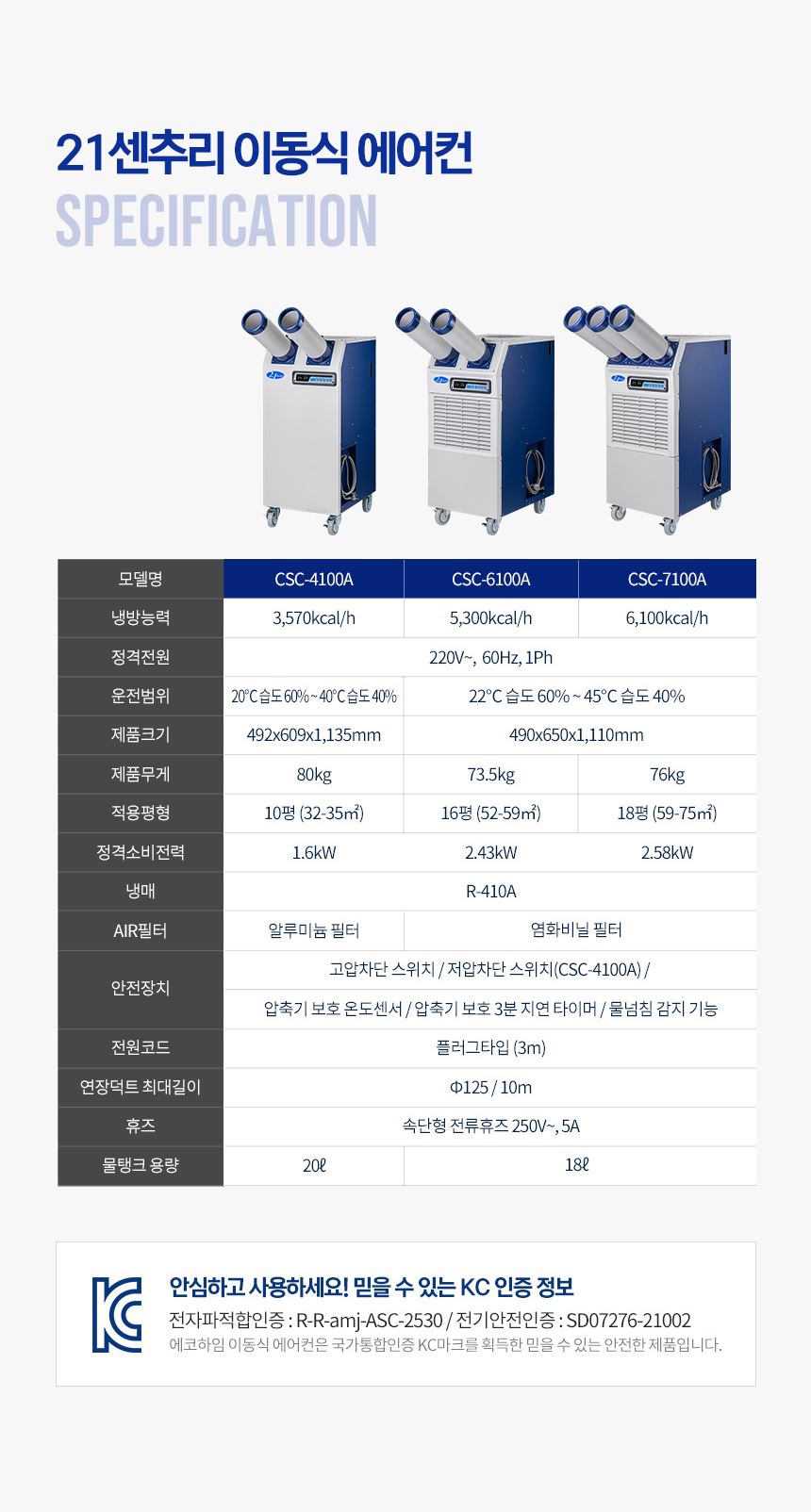 | 품명 및 모델명 | 21센추리 산업용에어컨 CSC-6100A |