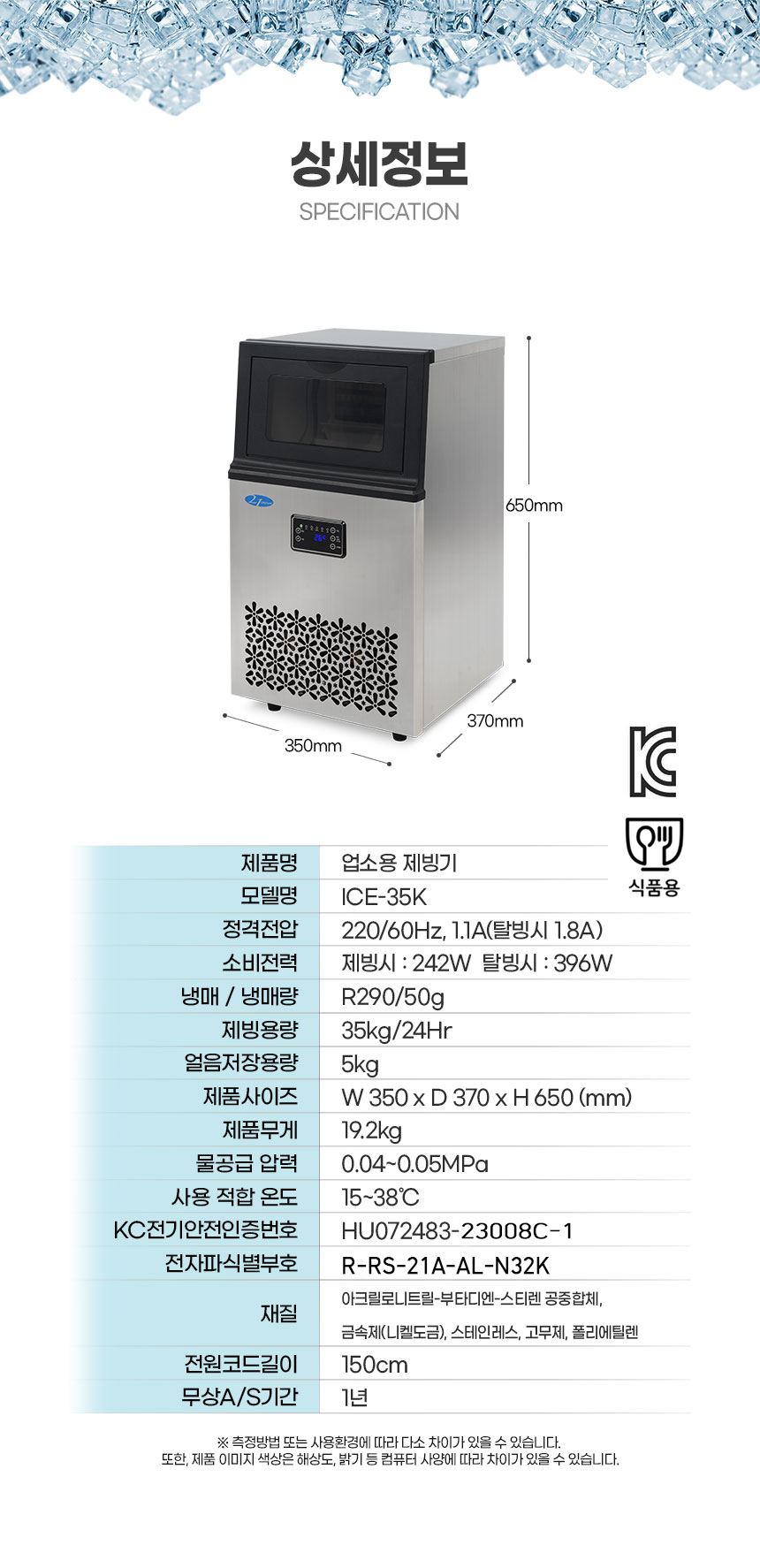 | 품명 및 모델명 | 21센추리 ICE-35K |