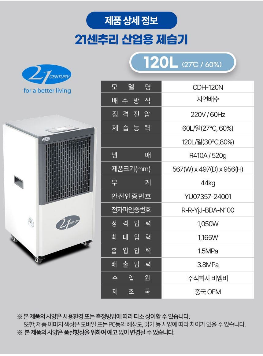 | 품명 및 모델명 | 21센추리 업소용 제습기/CDH-100N |