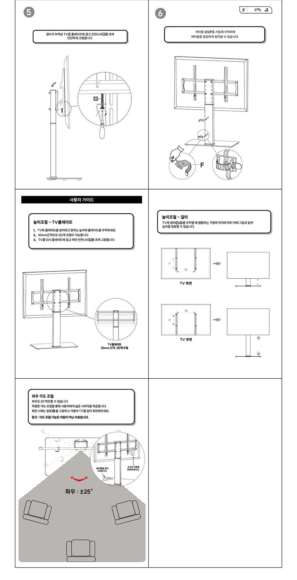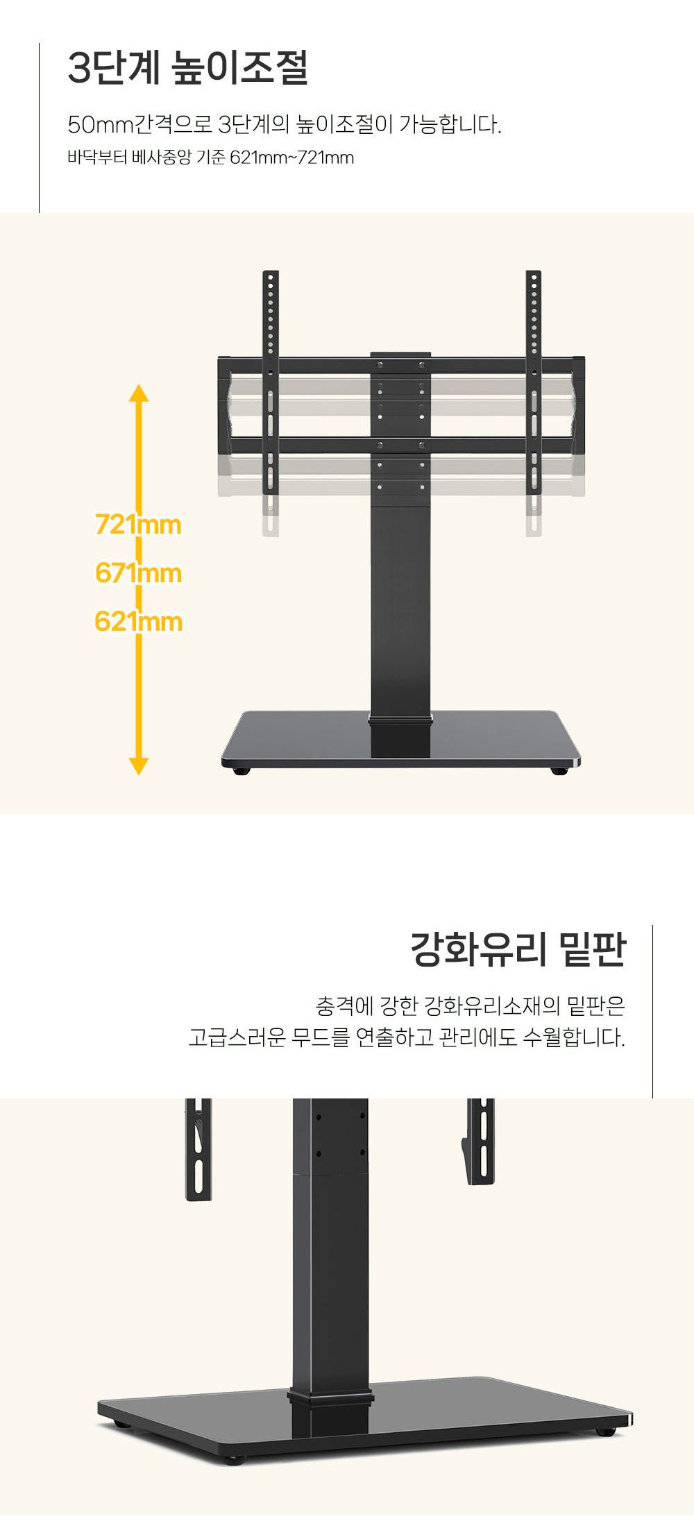 • 보인 TV 스탠드 거치대 좌우회전 브라켓 50-86인치 LG 삼성 호환BYS-53W