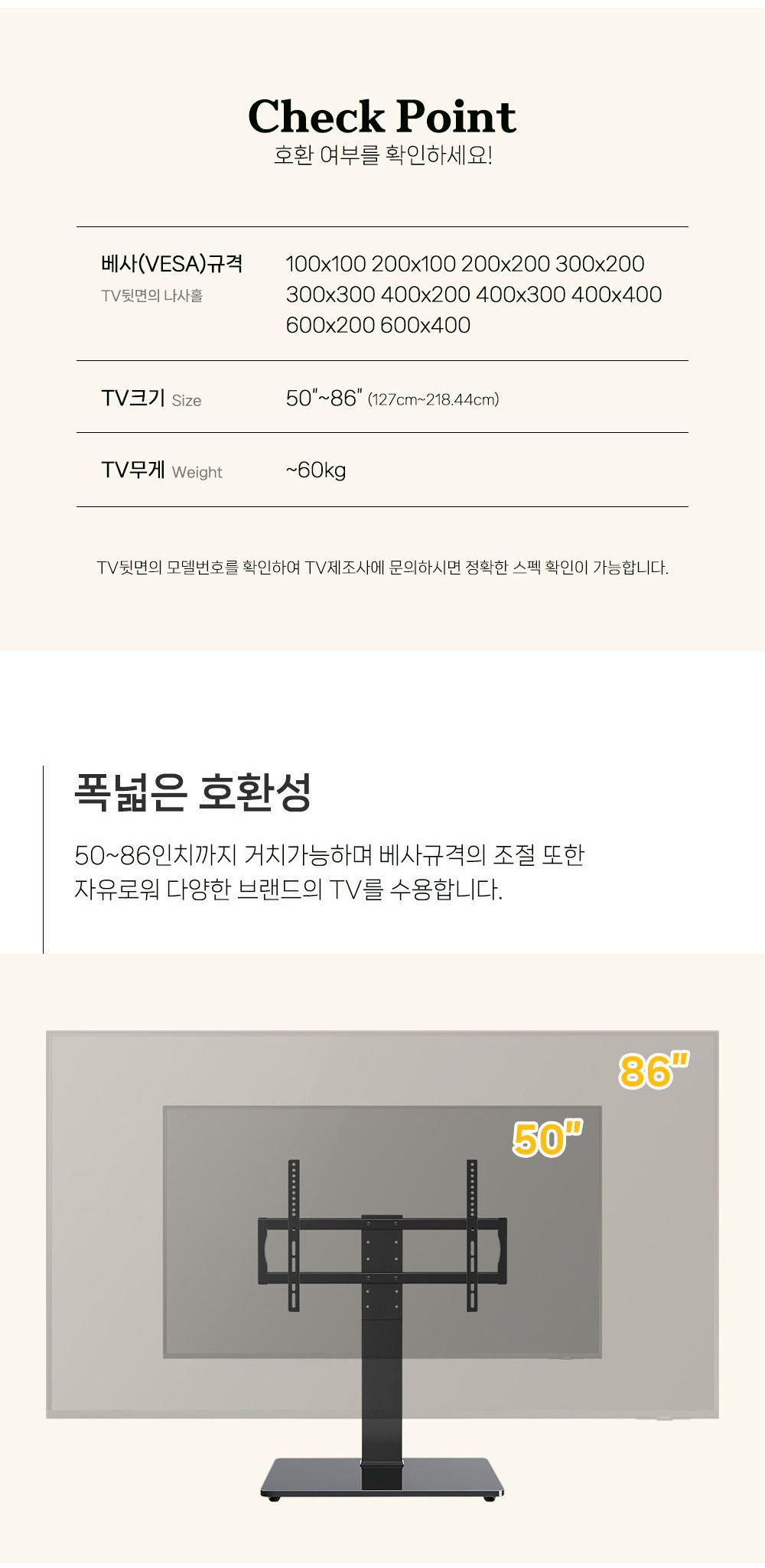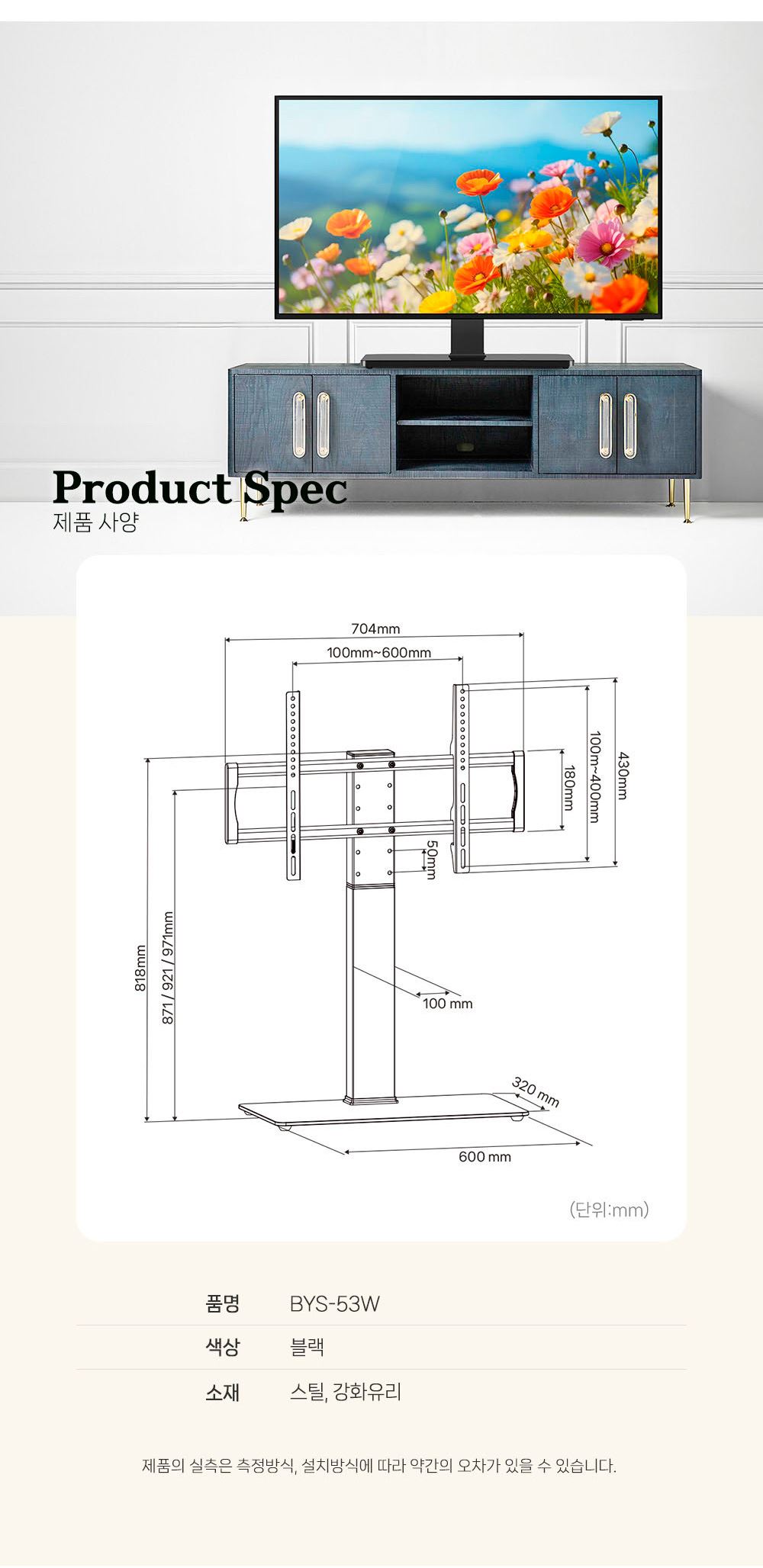 보인 TV 스탠드 거치대 좌우회전 브라켓 50-86인치 LG 삼성 호환BYS-53W / (주)로즈비님의 스토어 / 디비디비 / 구매하기 / 특가할인