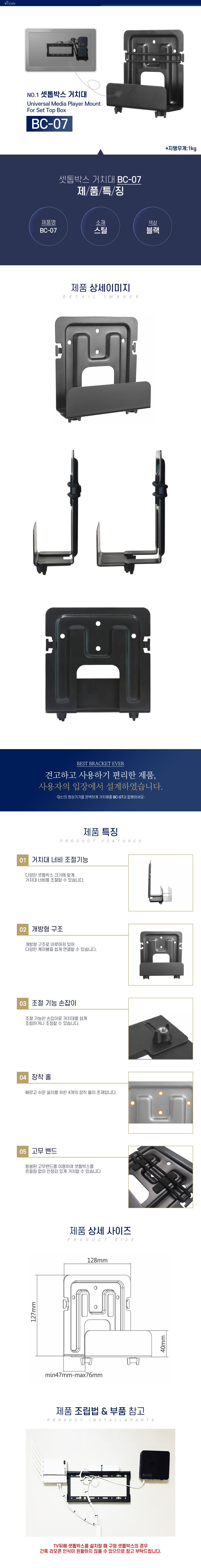 보인 BC-07 벽걸이형 셋탑박스 정리함 / 셋톱박스 숨기기/모니터 브라켓/티비 브라켓 거치대 R