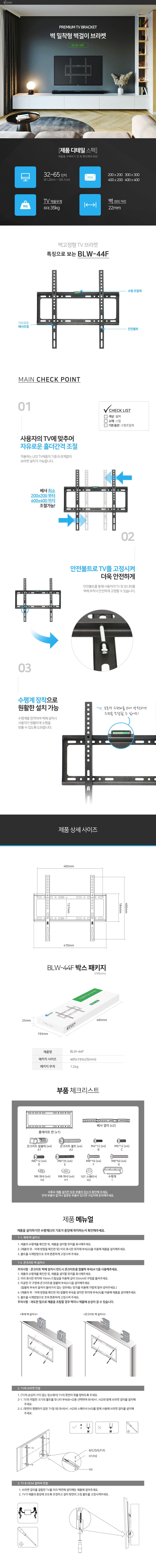 보인 BLW-44F 벽걸이 고정 TV거치대 삼성 LG 호환 32-65인치 R / (주)로즈비님의 스토어 / 디비디비 / 구매하기 / 특가할인
