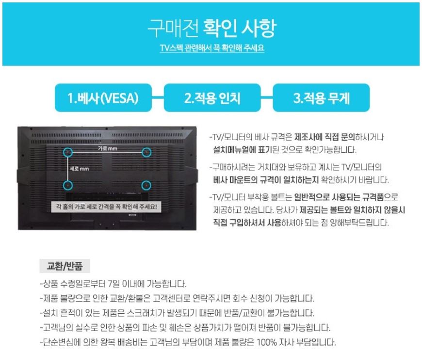 반품/교환안내 :  제품 개봉및 조립시 반품및 교환 불가하며, 반품 및 교환은 반드시 전화 통화 후 보내주셔야 합니다.