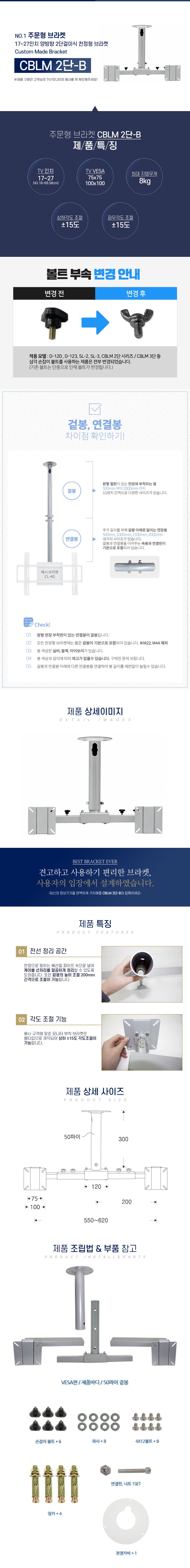 보인 CBLM 2단 B형 / 17인치부터27인치 천정형 브라켓/티비 브라켓R