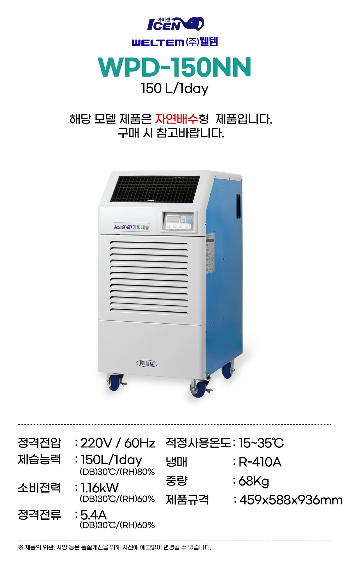 | 품명 및 모델명 | 웰템 산업용제습기 WPD-150NN |
