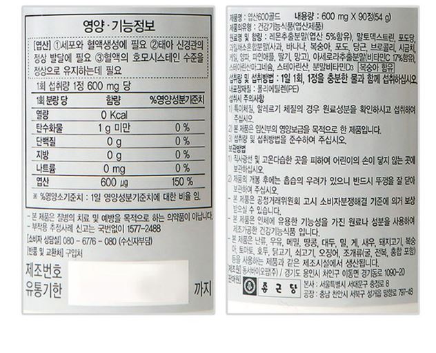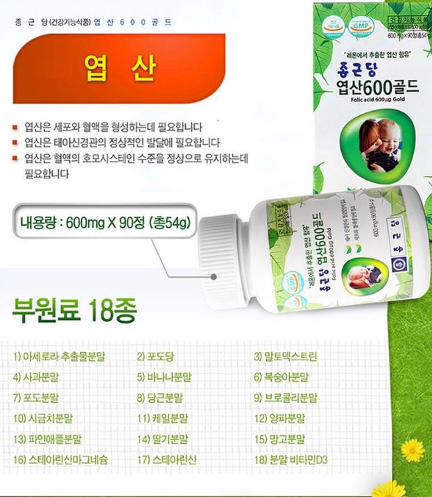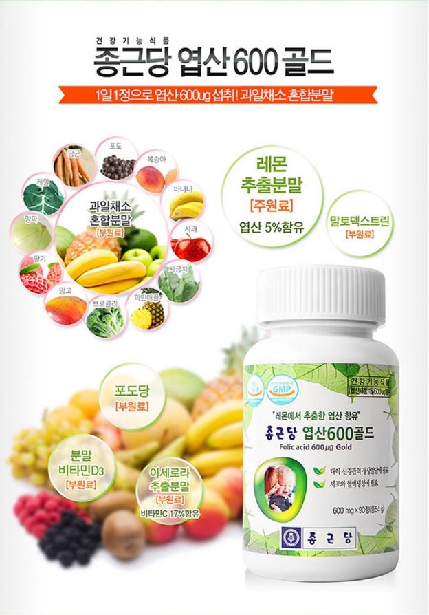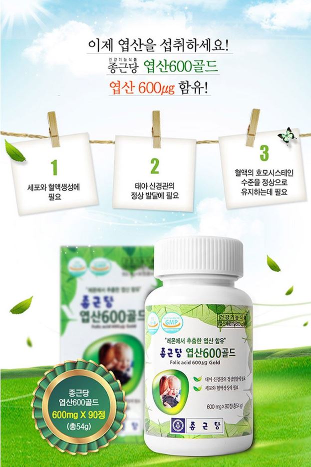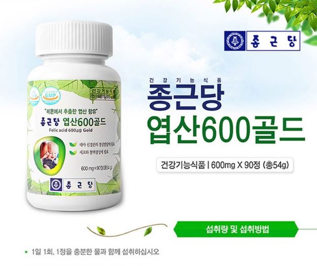 • 종근당건강 엽산600골드 600mg x 90캡슐