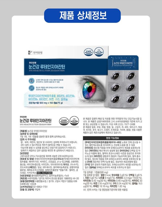 • 한미양행 눈건강 루테인 지아잔틴 500mg x 150캡슐(5개월분)