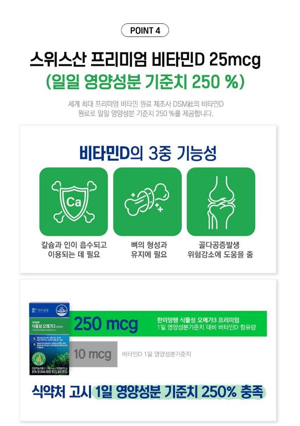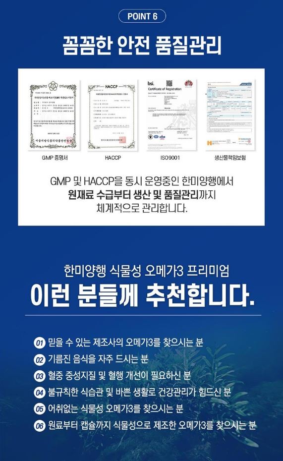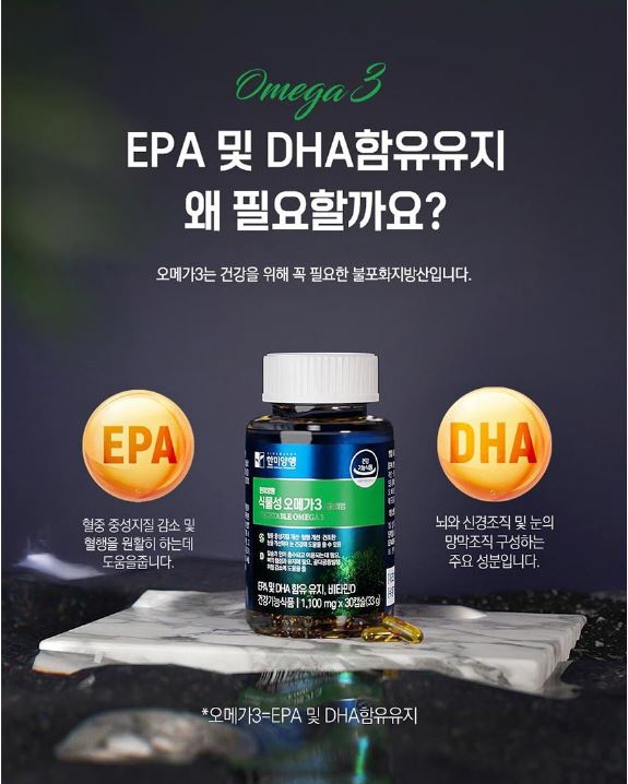 • 한미양행 식물성 오메가3 프리미엄 1,100mg x 30캡슐(1개월분)
