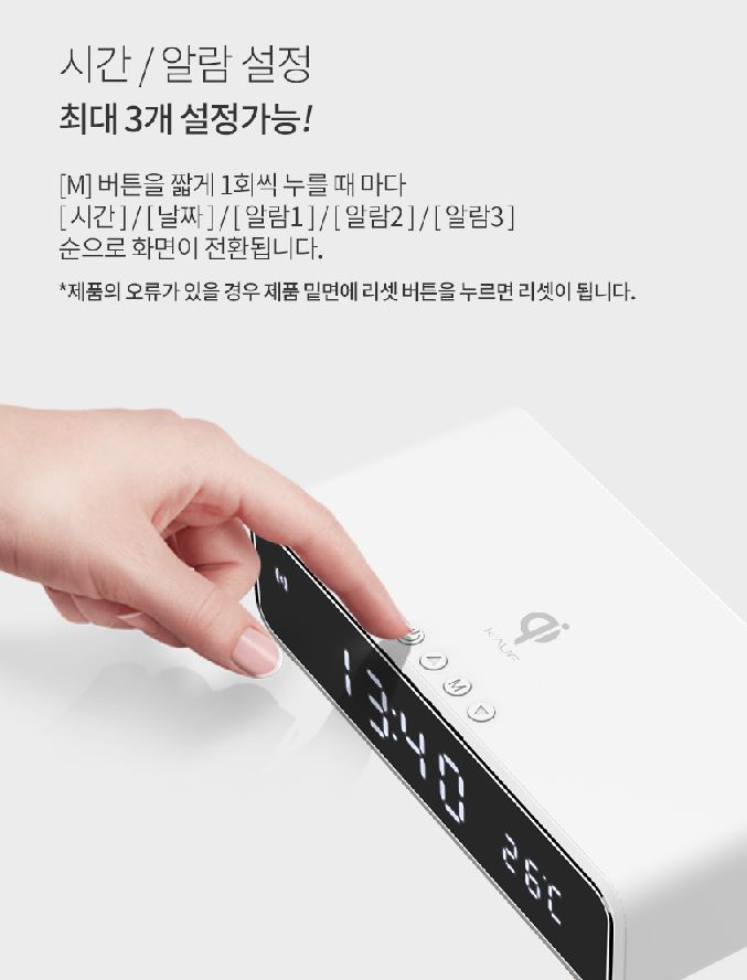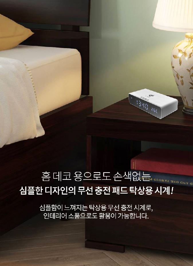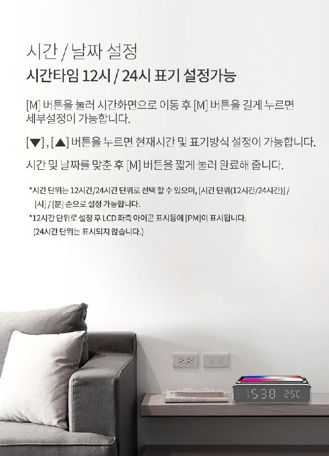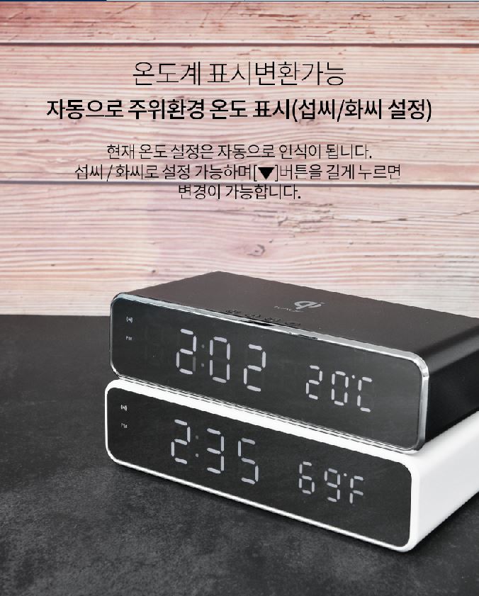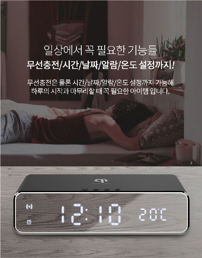 • 무선충전 탁상용 알람시계 올인원 블랙 / 화이트